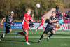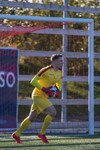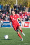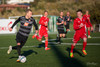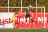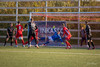 Fyrirgjöf frá Leif fer af varnarmanni og endar með fínni vörslu hjá Óskari í Haukamarkinu