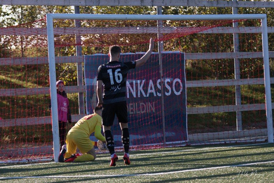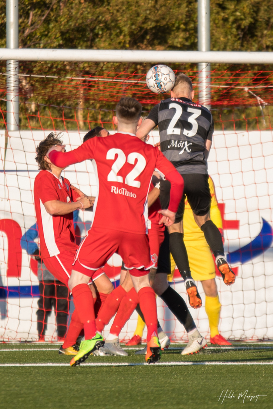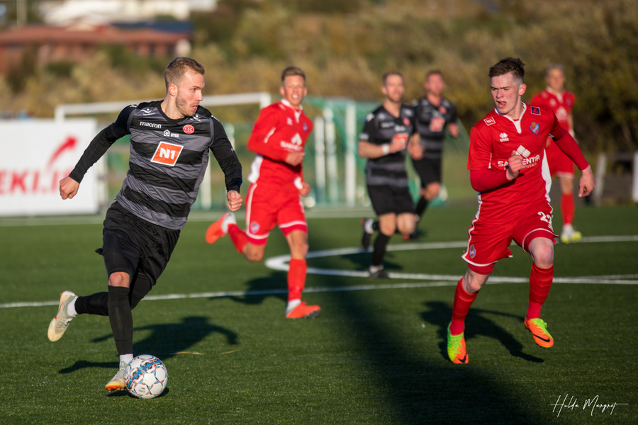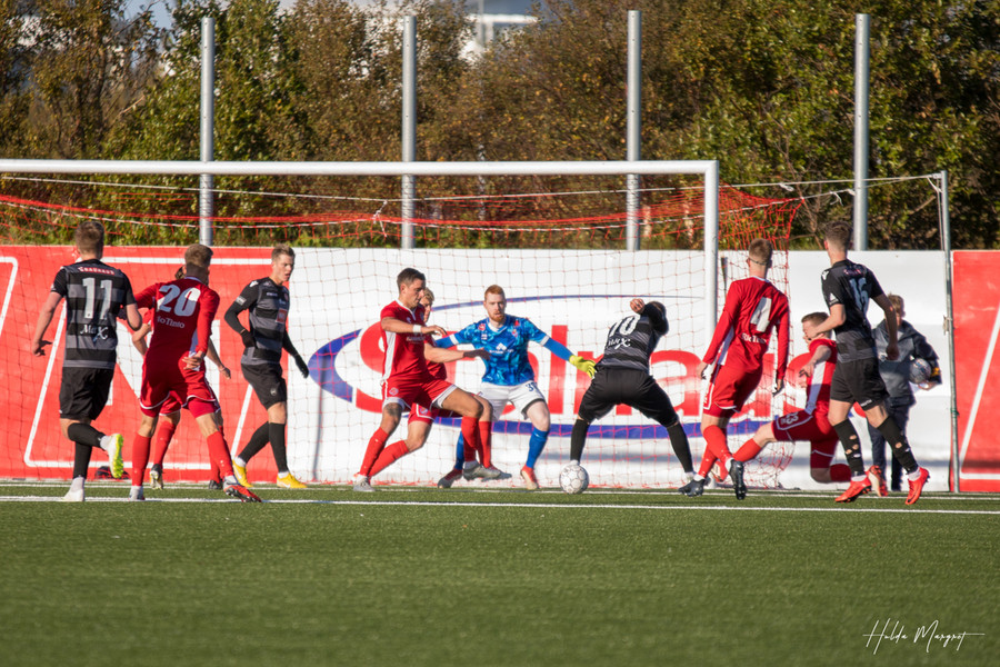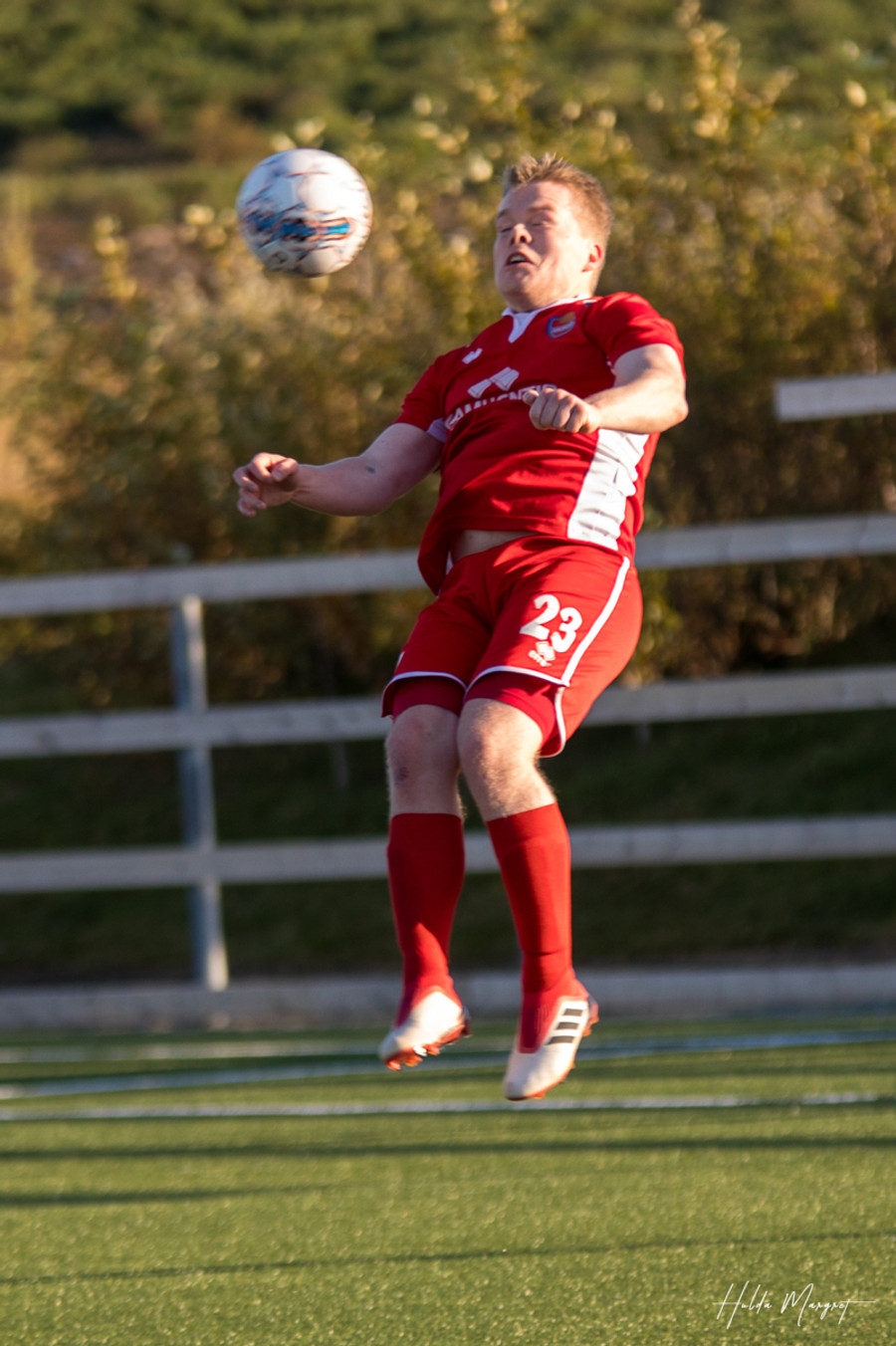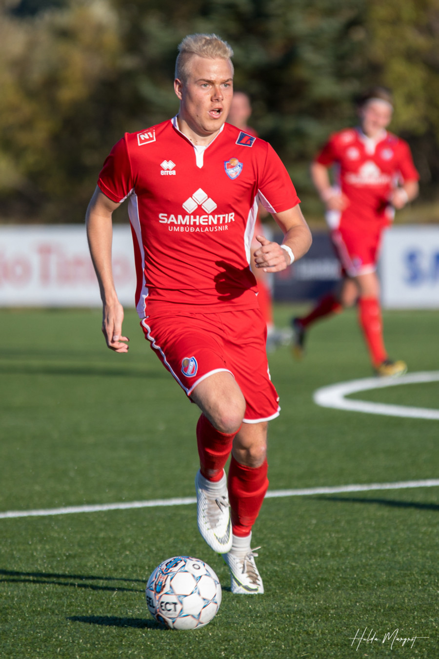 Kristinn Pétursson í fínu færi að bæta við öðru marki en skotið beint á Arnar. Komnar 5 min í uppbót
