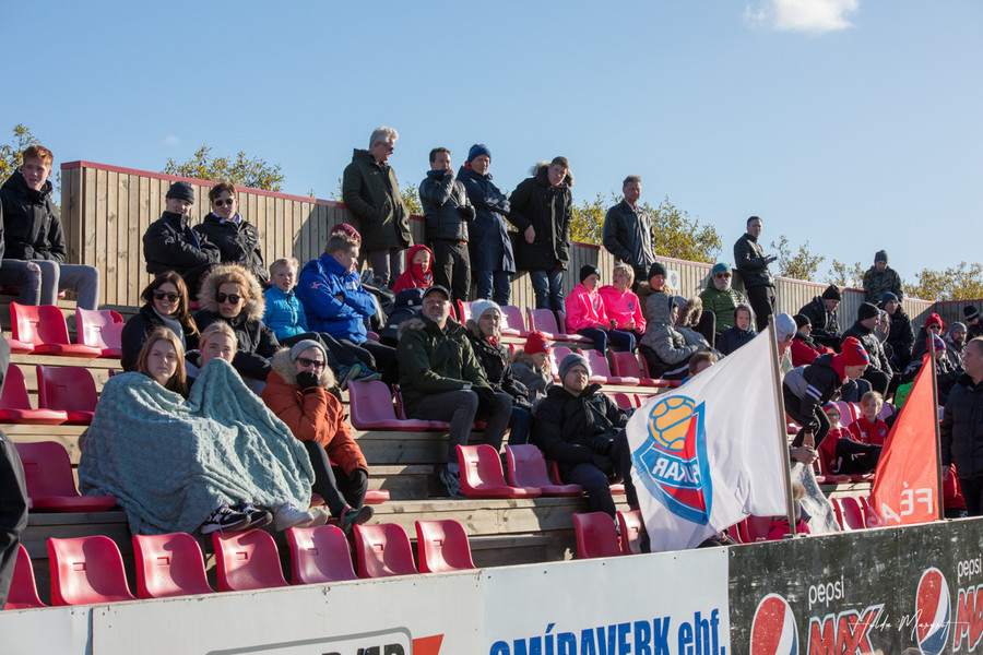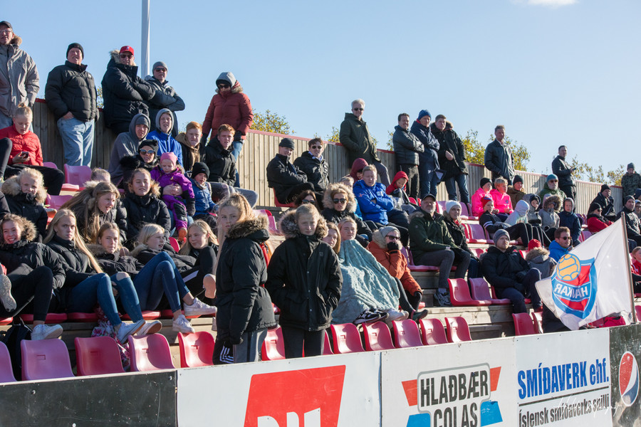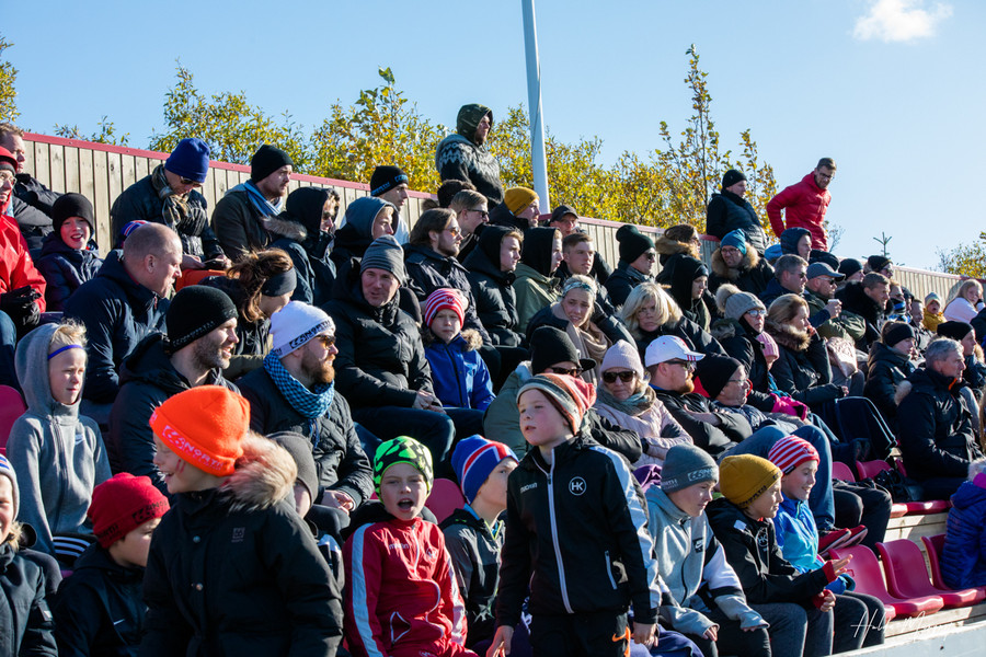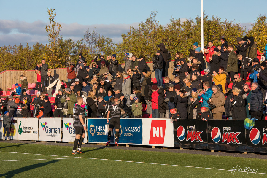 HK-ingar fagna Pepsi sæti með sínum stuðningsmönnum.