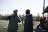 Frábærar aðstæður hér á Ásvöllum, vallarstarfsmenn voru að klára vökvun. HK-ingar í halda bolta innan liðs og Haukarnir búnir með þann þátt og eru í léttum sendingum. Dómararnir búnir með sína upphitun og eru farnir inn. 15 min í leik