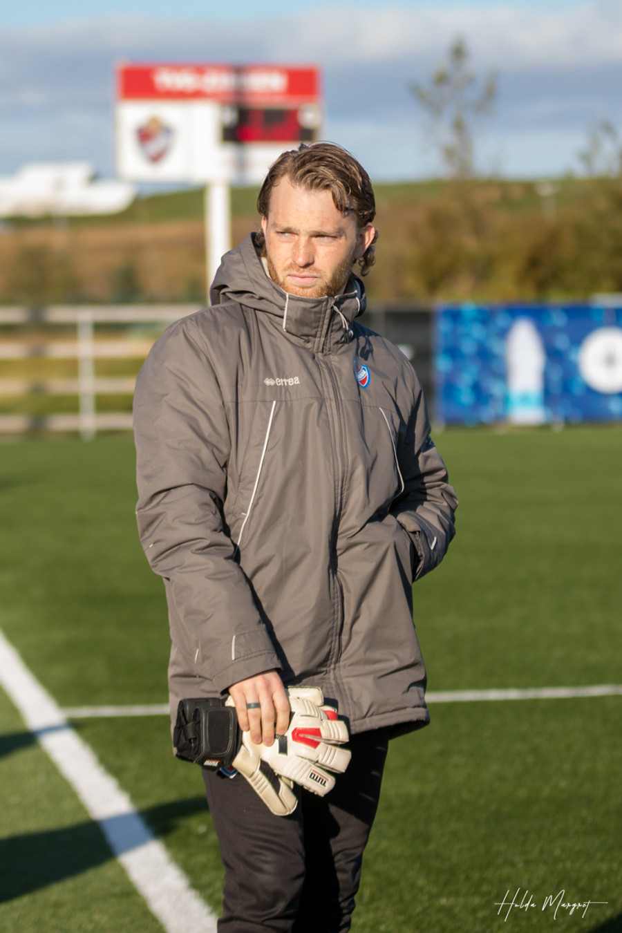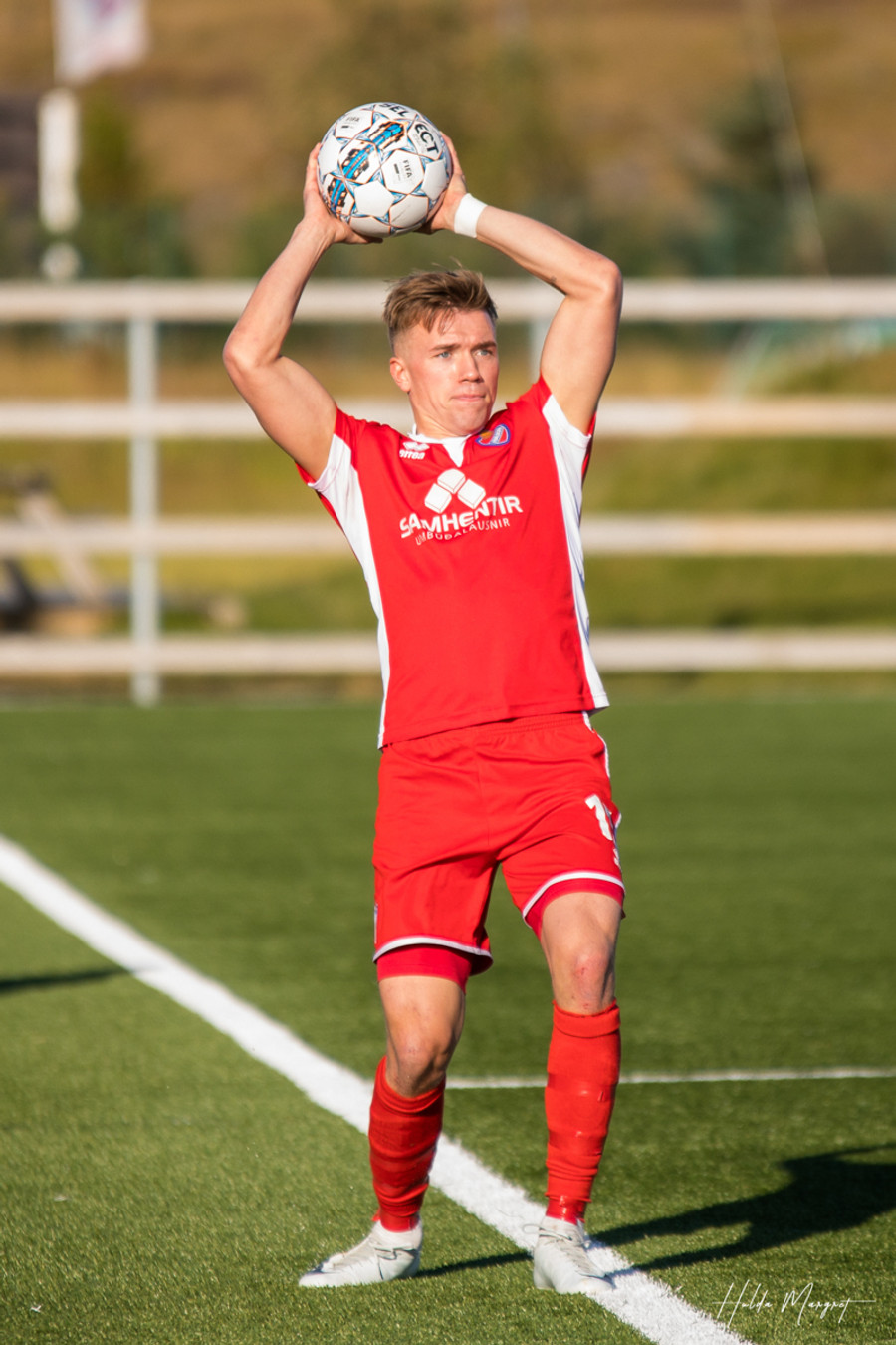 Aron Freyr virðist hálf vankaður og þarf skiptingu
