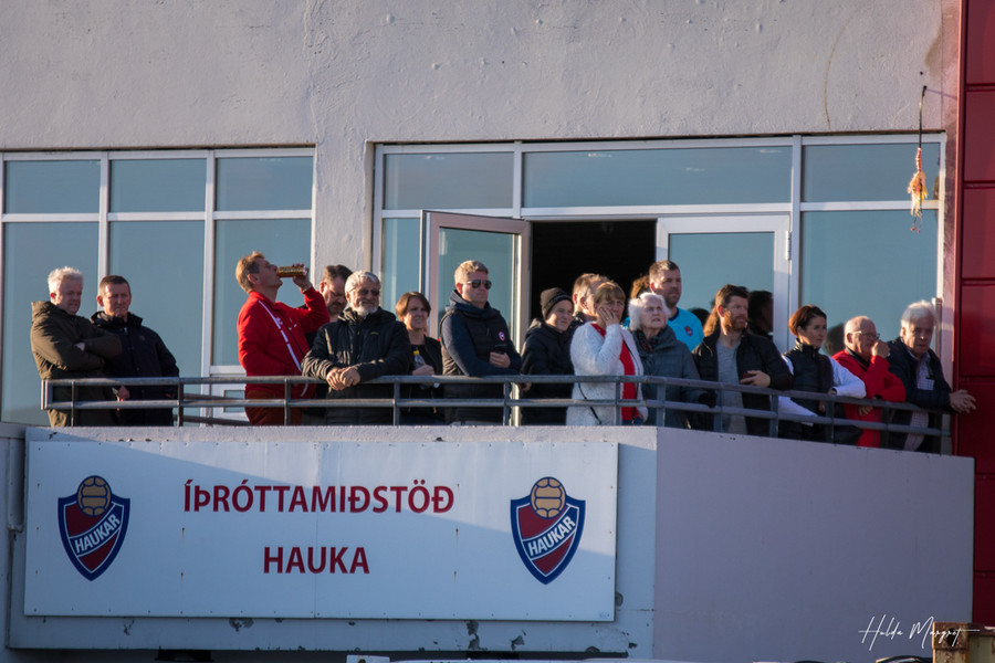 Haukalagið komið í hljóðkerfið, menn að tæma völlinn, það er allt að verða klárt.