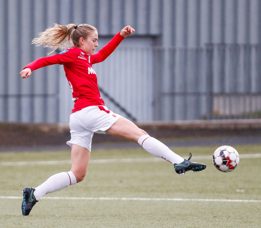 Elín Metta nálagt því að skora en hittir boltann ekki nógu vel! Kemur langur bolti upp í hornið á Hlín sem tekur Sóley á og leggur hann fyrir á Elín Mettu en skot hennar fer framhjá markinu!