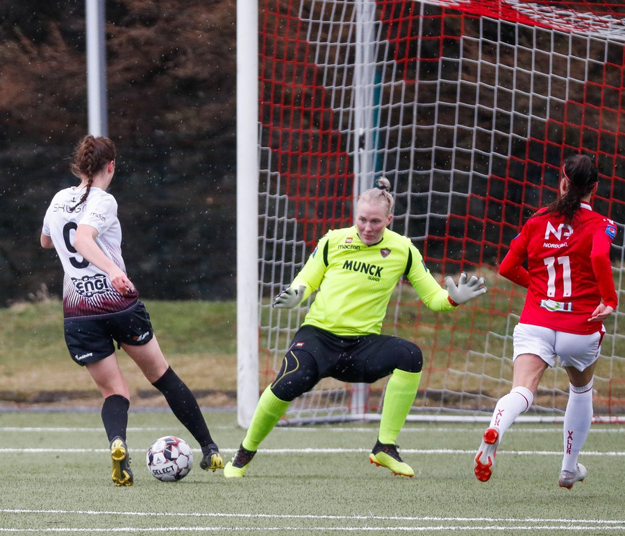 Blikar í kjörstöðu en sendinginn frá Hildi var í gegn á Sólveigu var ekki góð. Hún hefði átt að setja boltann út á Álsug Mundu sem var með allt svæðið opið fyrir framan sig.