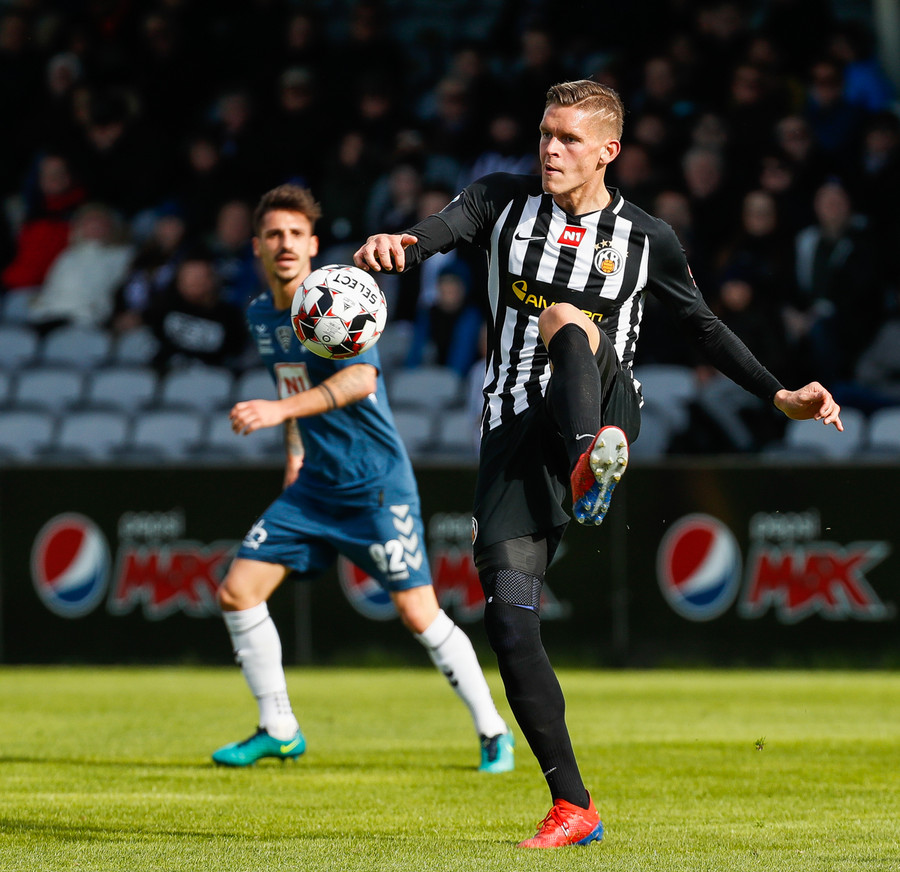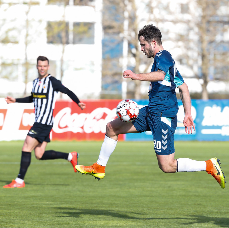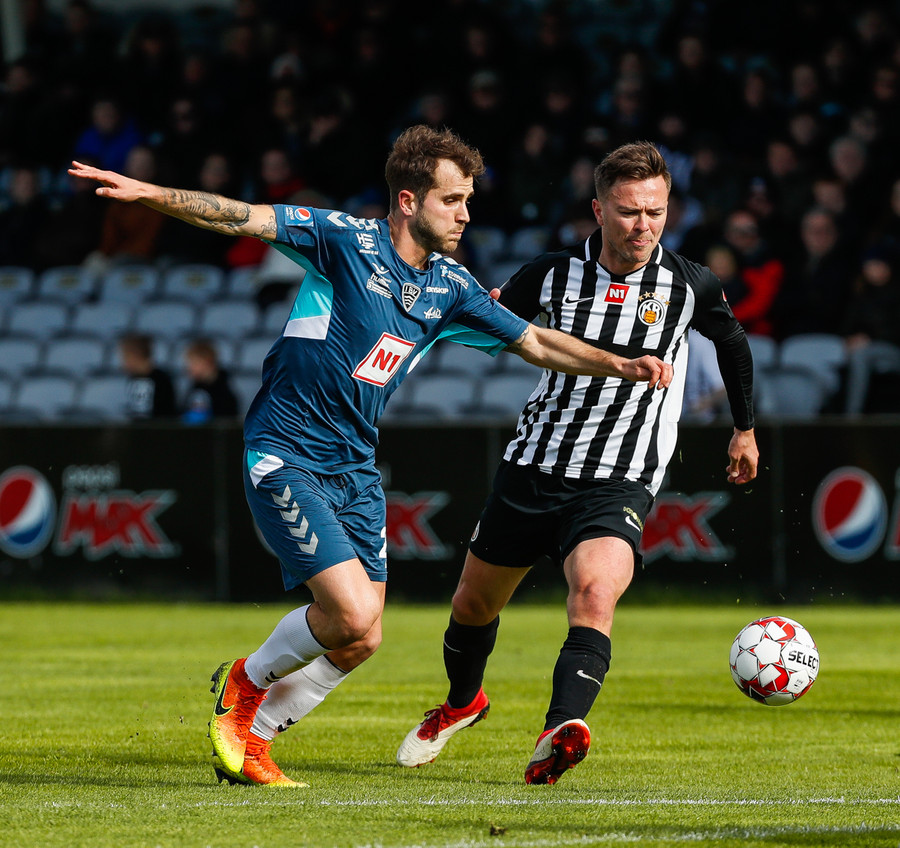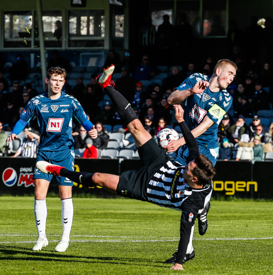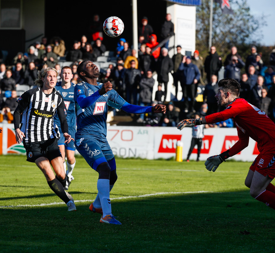 Kennie setur fastann bolta fyrir sem að Óskar nær að drepa inní vítateignum með tvo menn í sér áður en að hann neglir honum framhjá Rafael í markinu.