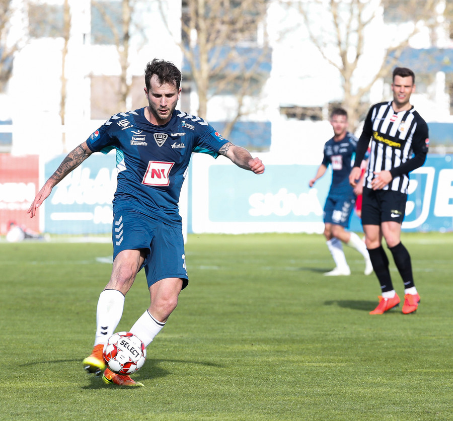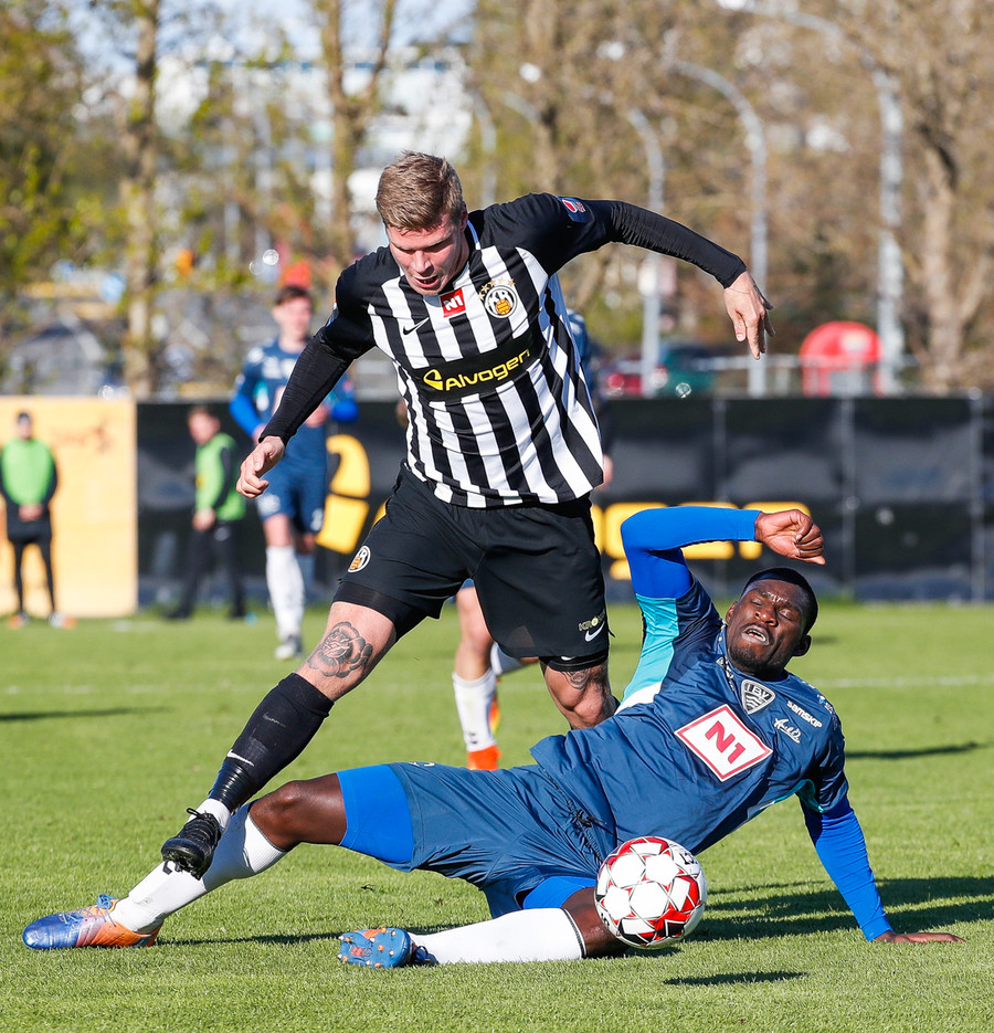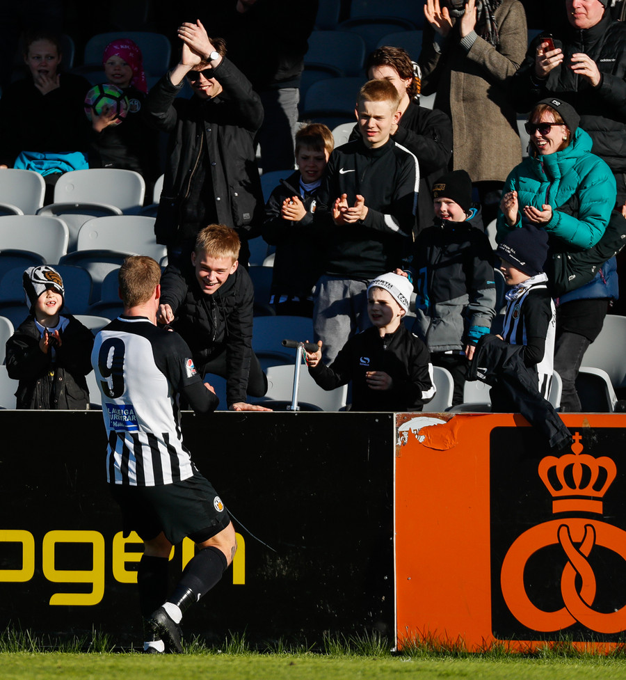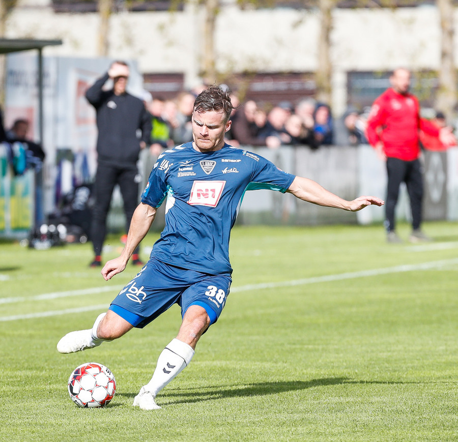 Kennie setur fastann bolta fyrir sem að Óskar nær að drepa inní vítateignum með tvo menn í sér áður en að hann neglir honum framhjá Rafael í markinu.
