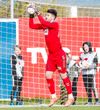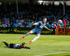 Kennie Chophart sér hér að Rafael stendur framarlega og reynir skot frá miðju. Skotið er hins vegar alveg vonalust og endar aftur fyrir endamörk.