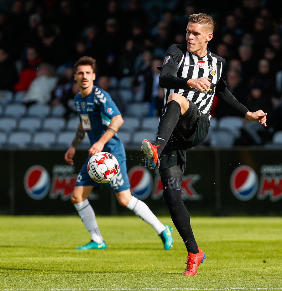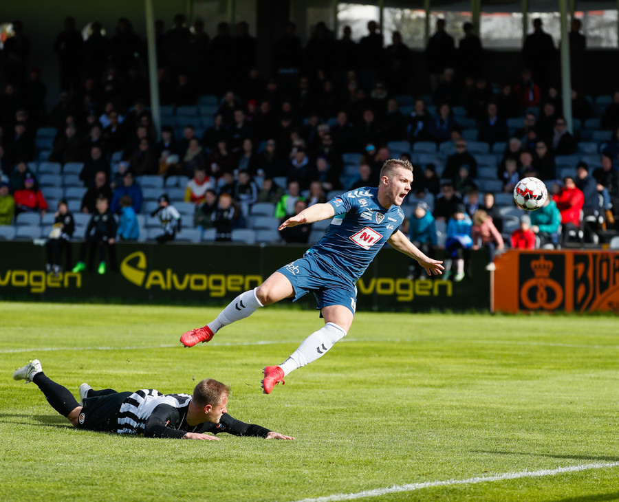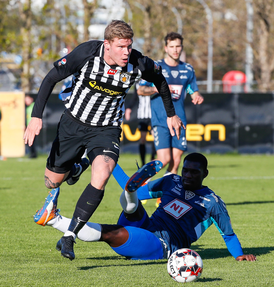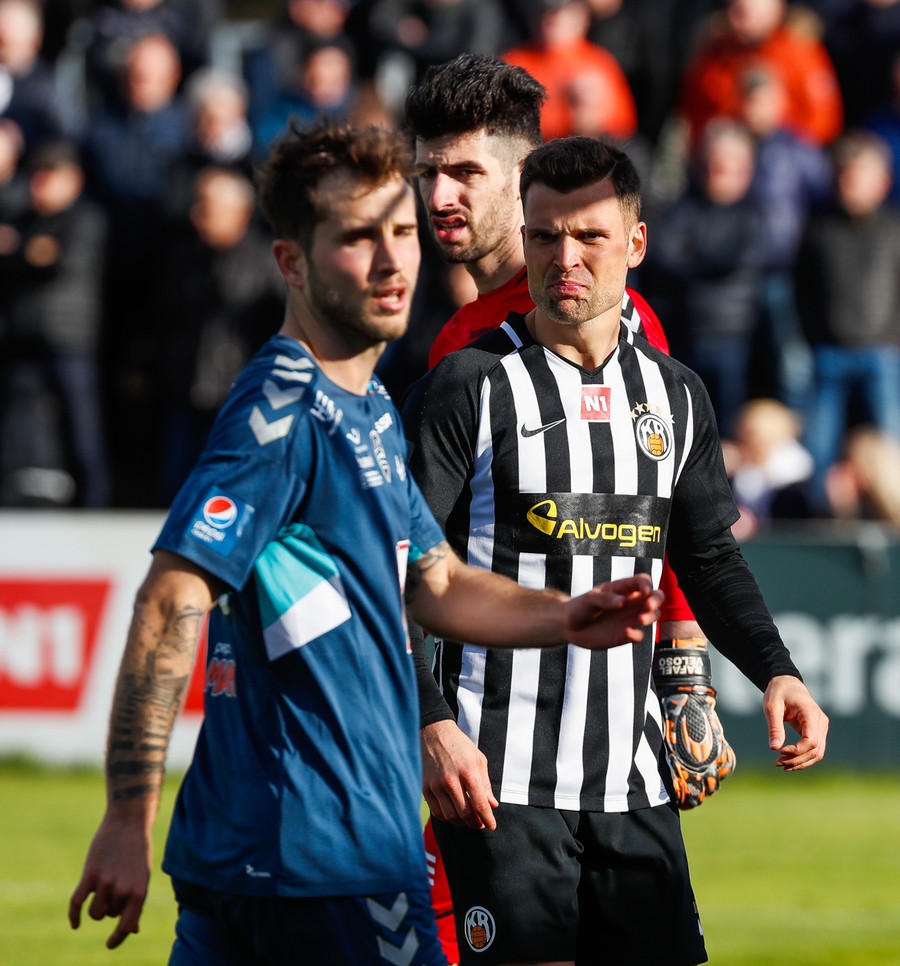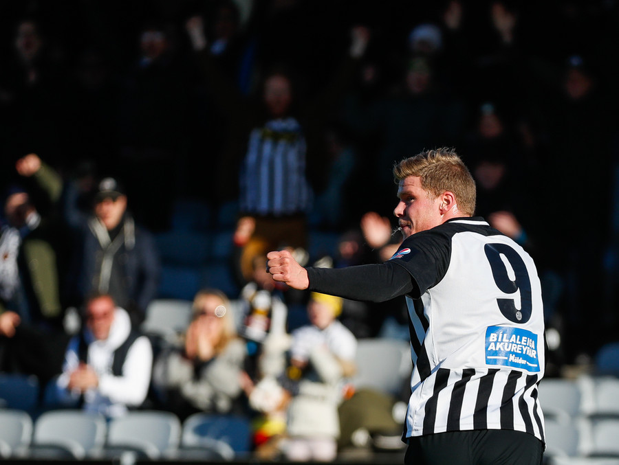 Óskar Örn á hér fína fyrirgjöf beint á kollinn á Tobiasi en skalli hans er laus og beint á Rafael í markinu.
