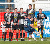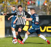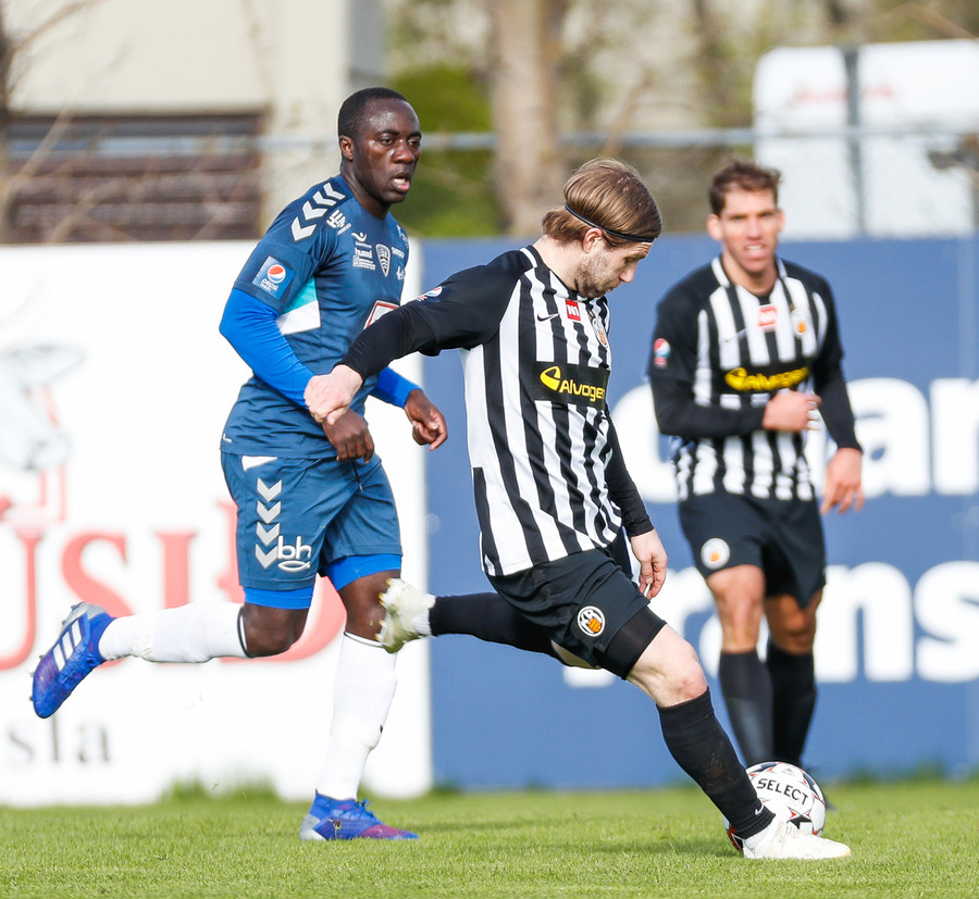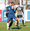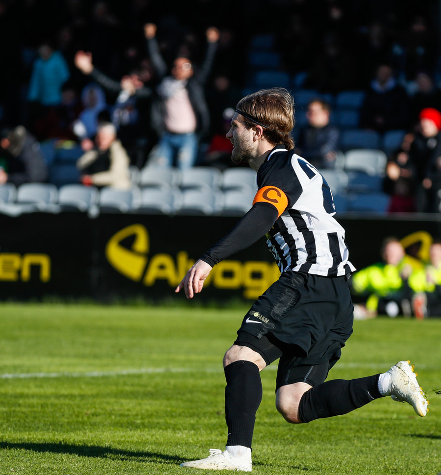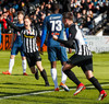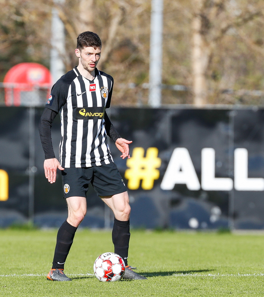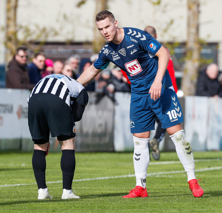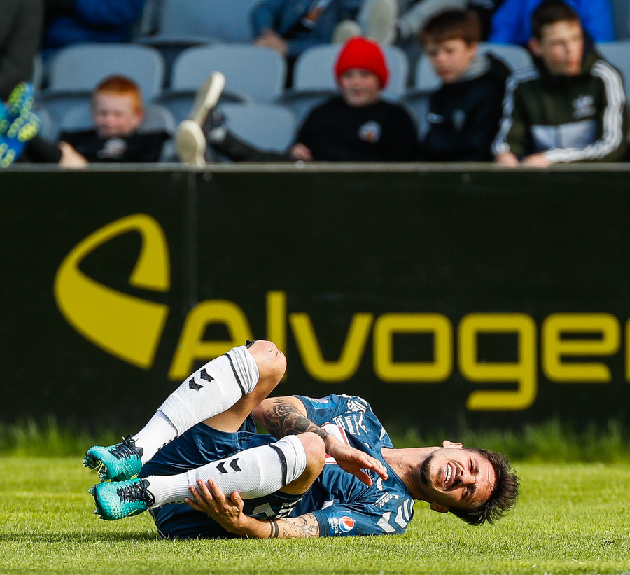 Kennie brýtur hér klaufalega á Diogo Coelho eftir að hafa misst boltann yfir sig. Aukspyrna á hættulegum stað sem að Jonathan Franks tekur.