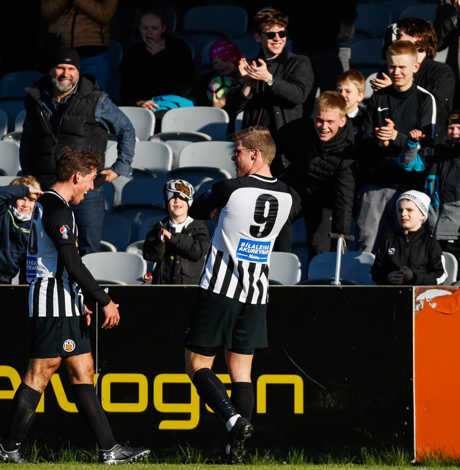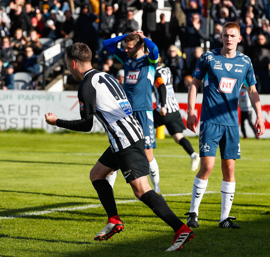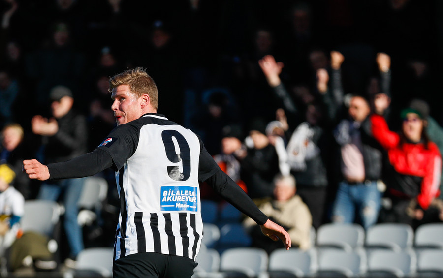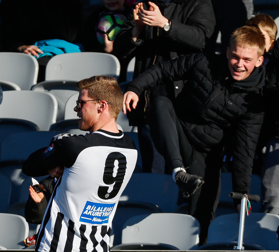 Óskar Örn vinnur boltann á miðjunni og er fljótur að hugsa og setur hann innfyrir á Bjögga sem að skorar auðveldlega framhjá Rafael í markinu. Fagnar með því að ná í sólgleraugu í stúkunni.