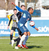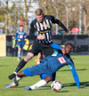 Hér hinum meginn á Víðir Þorvarðar góða fyrirgjöf en Gummi Magg hittir ekki boltann.