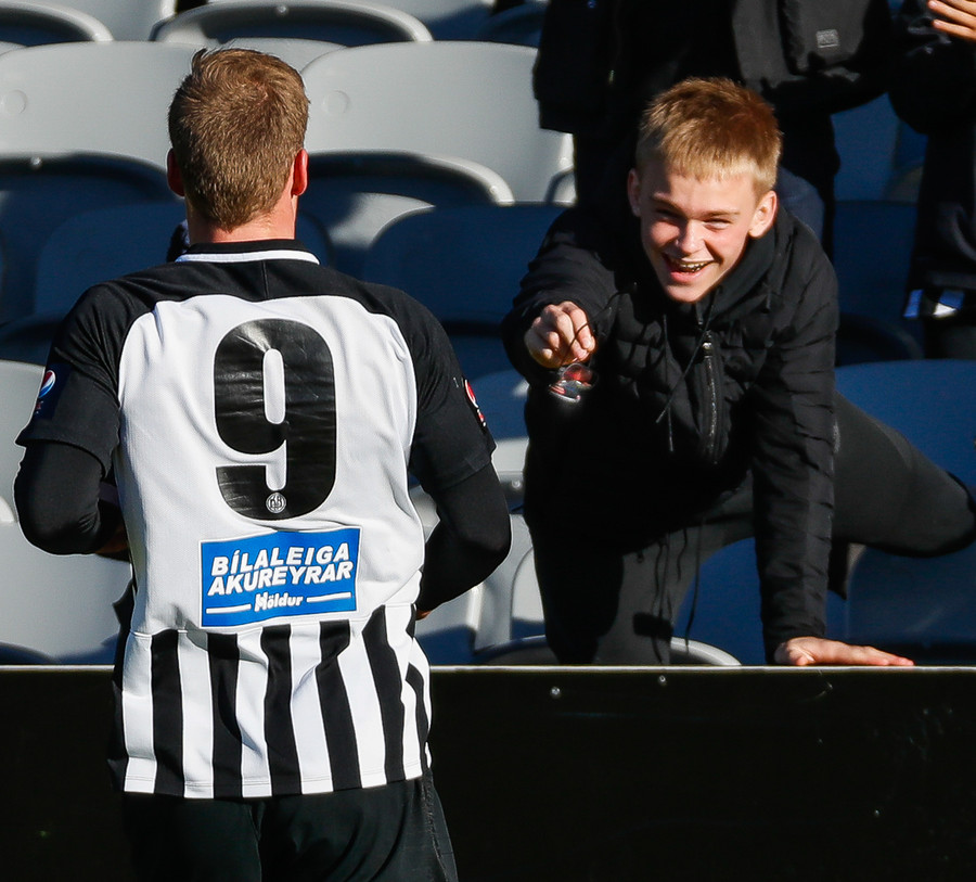 Nú er aðeins farið að týnast í stúkuna og þar fer að sjálfsögðu Bóas nokkur fremstur í flokki. Titlaóður hann Bóas.