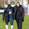 Leikmenn eru mættir út á völlinn í upphitun. Fjörtíu mínútur í leik. Ég spái að hann verði skemmtilegur, og er ég nú þekktur fyrir að vera góð véfrétt.