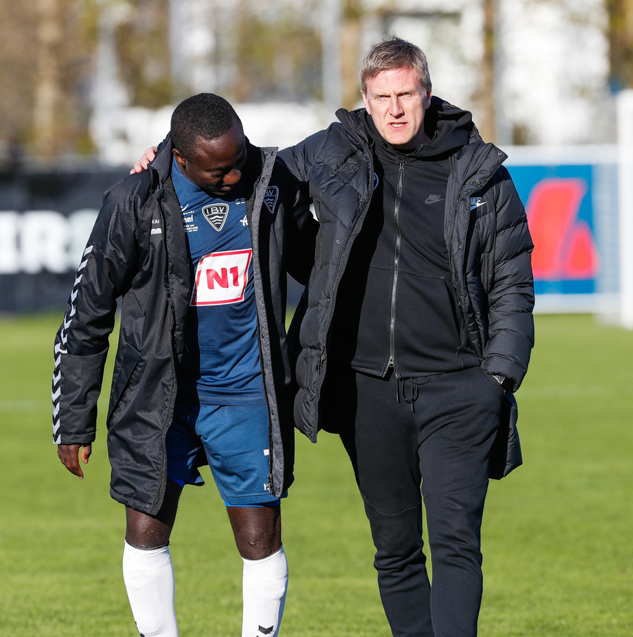 Missir boltann of langt frá sér og straujar Evariste Ngolok. Réttur dómur.