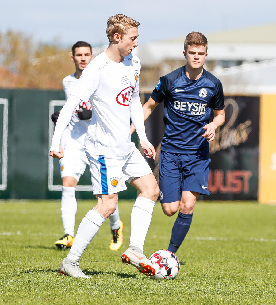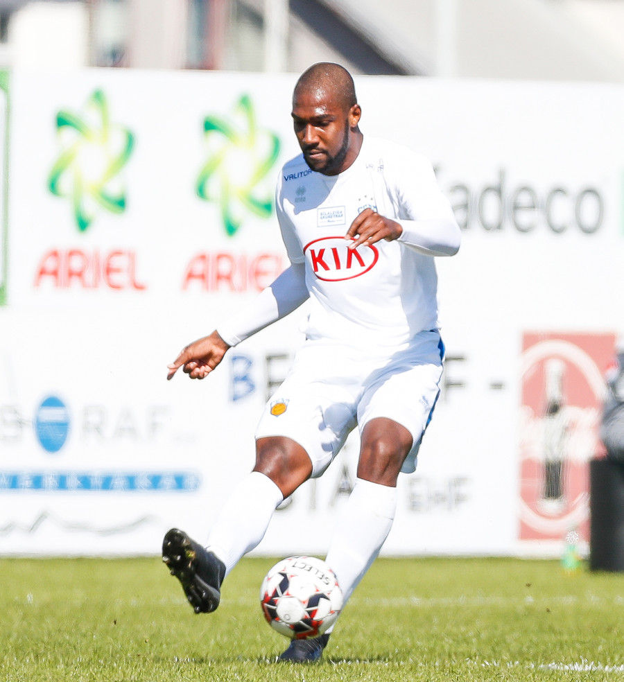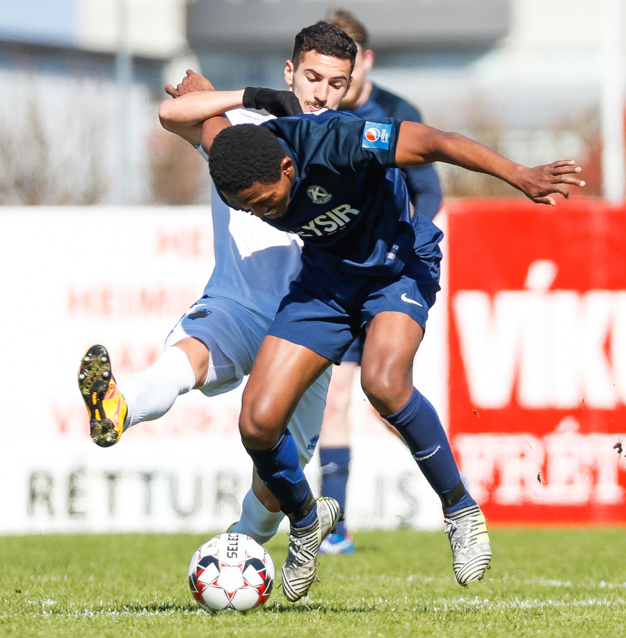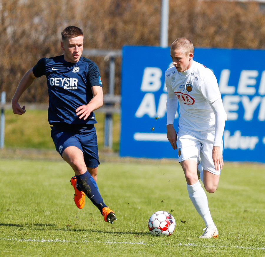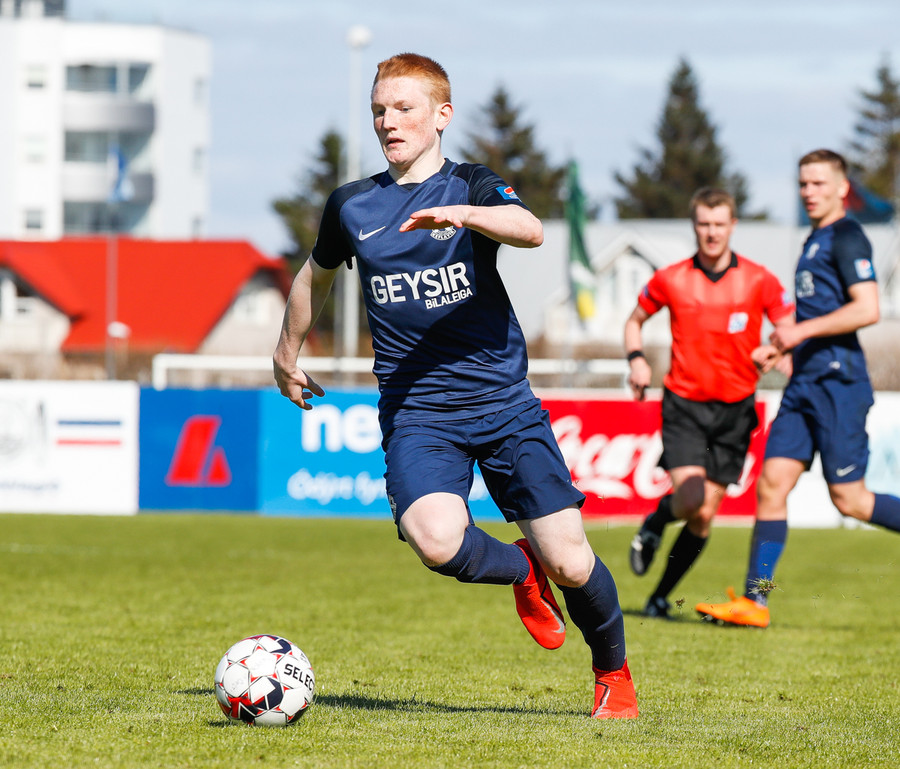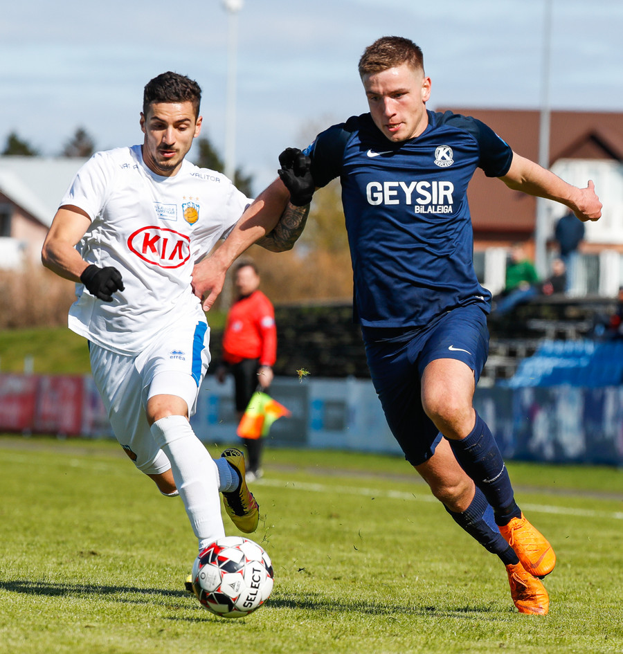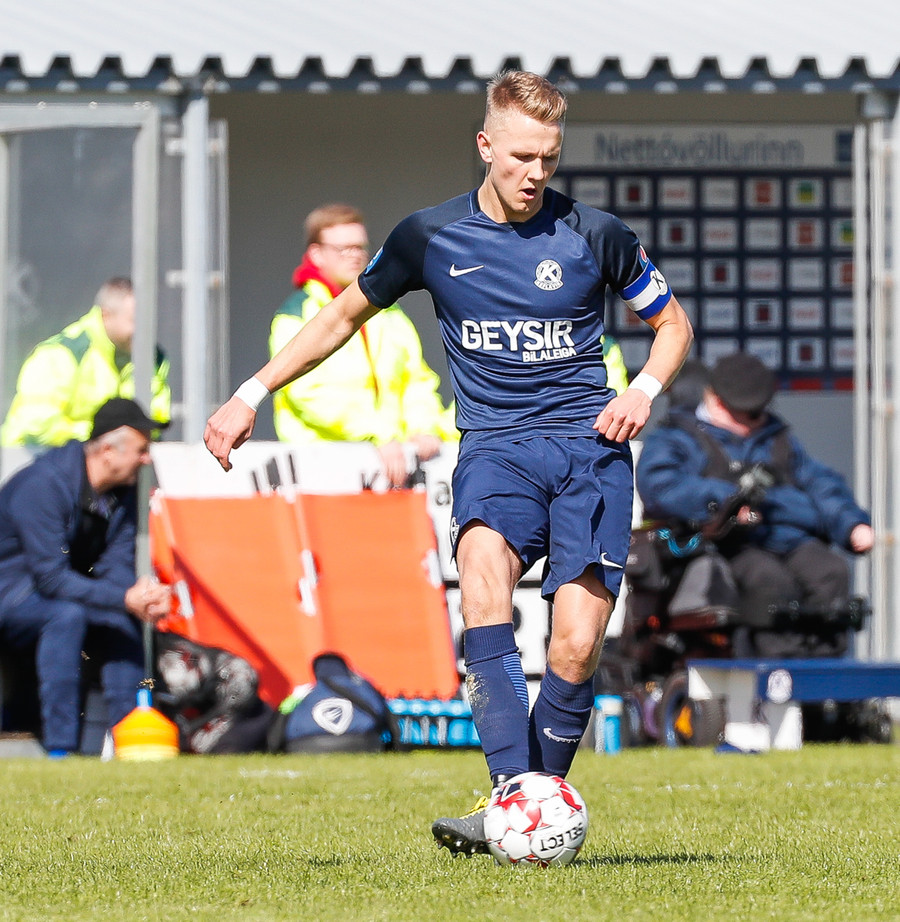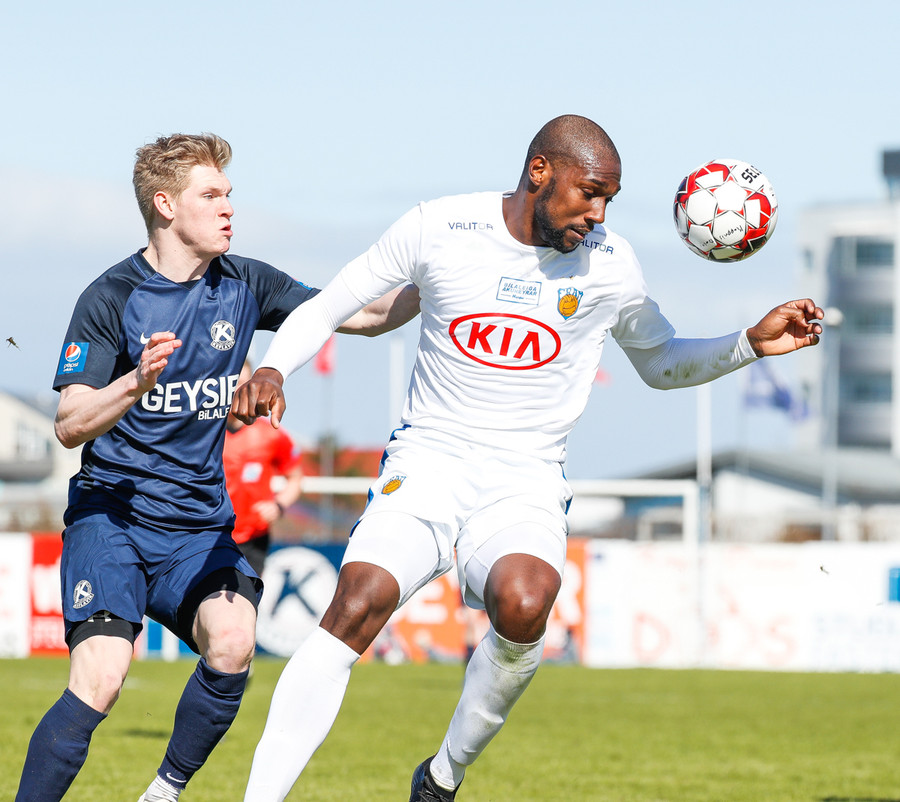 Adolf Bitegeko kemur með sterkan sprett upp hægri kantinn og ætlar sér sov að gefa fyrir en stúkan tók "æjiiii" svo léleg var sú sending.