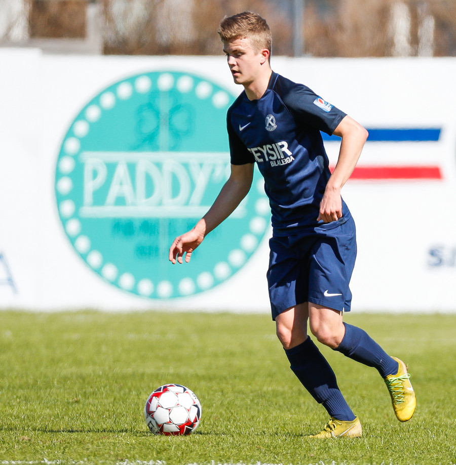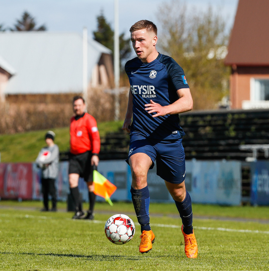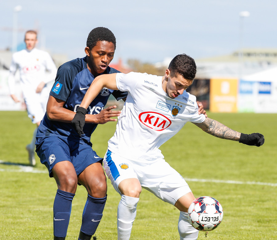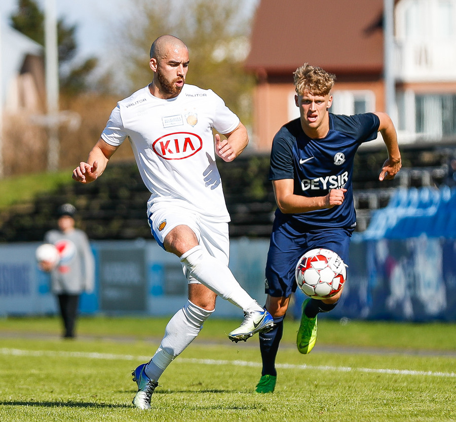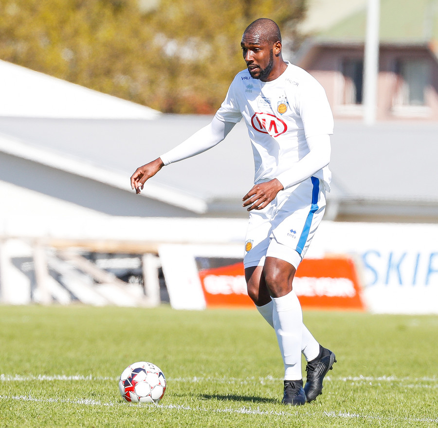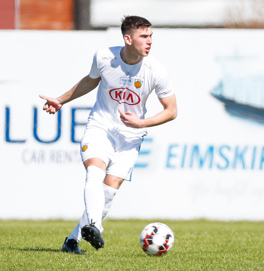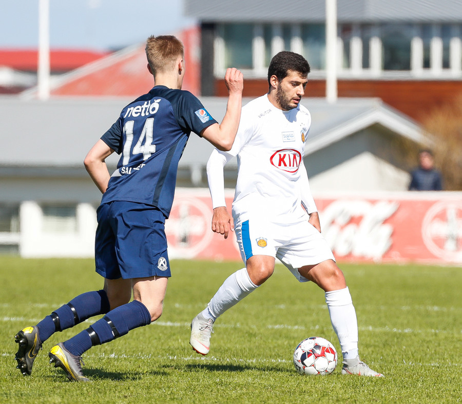 Adolf Bitegeko kemur með sterkan sprett upp hægri kantinn og ætlar sér sov að gefa fyrir en stúkan tók "æjiiii" svo léleg var sú sending.
