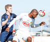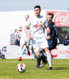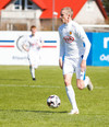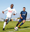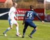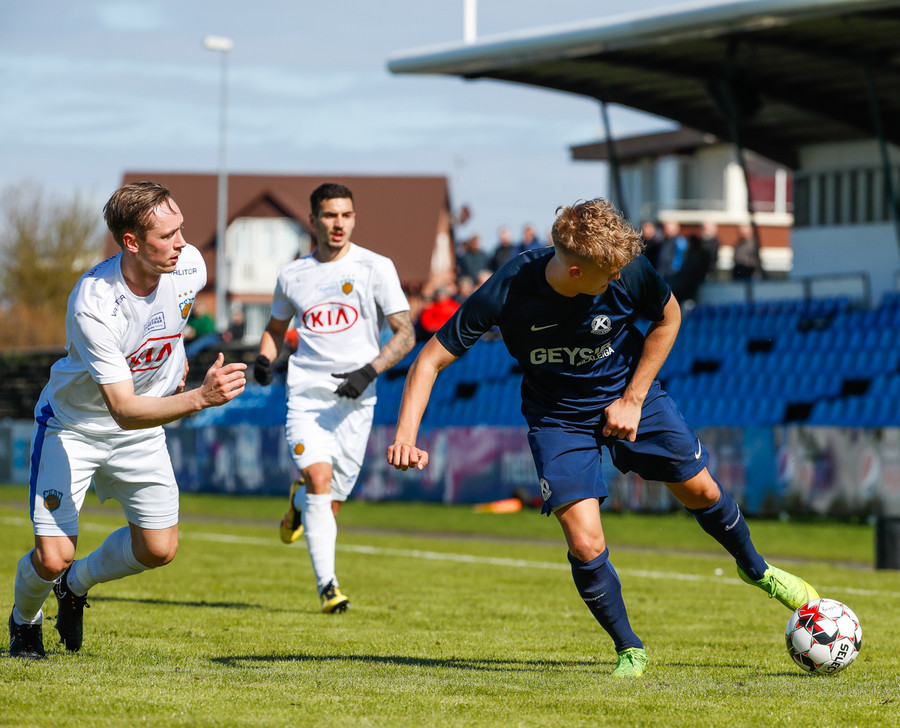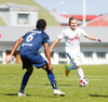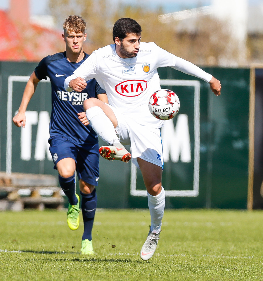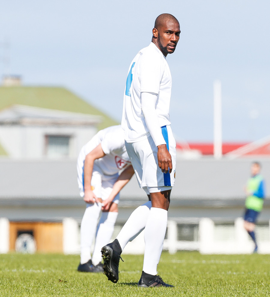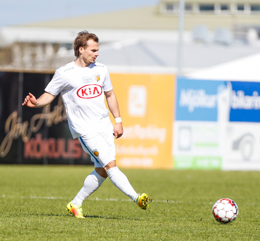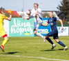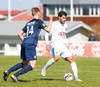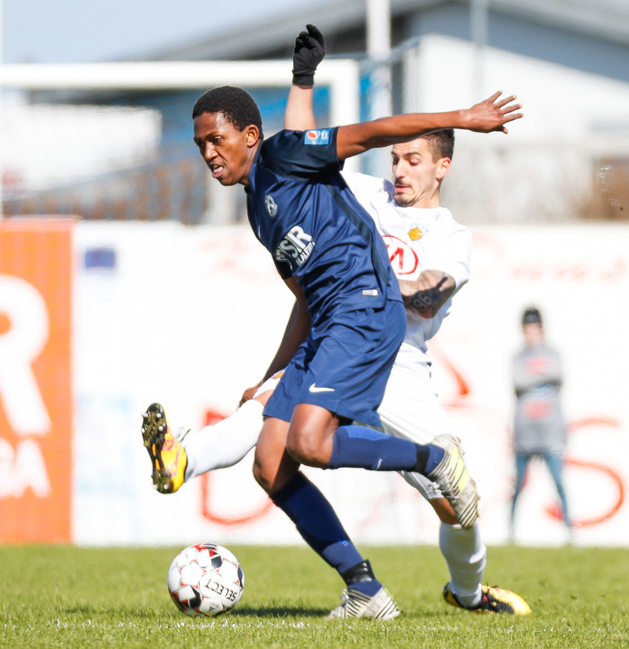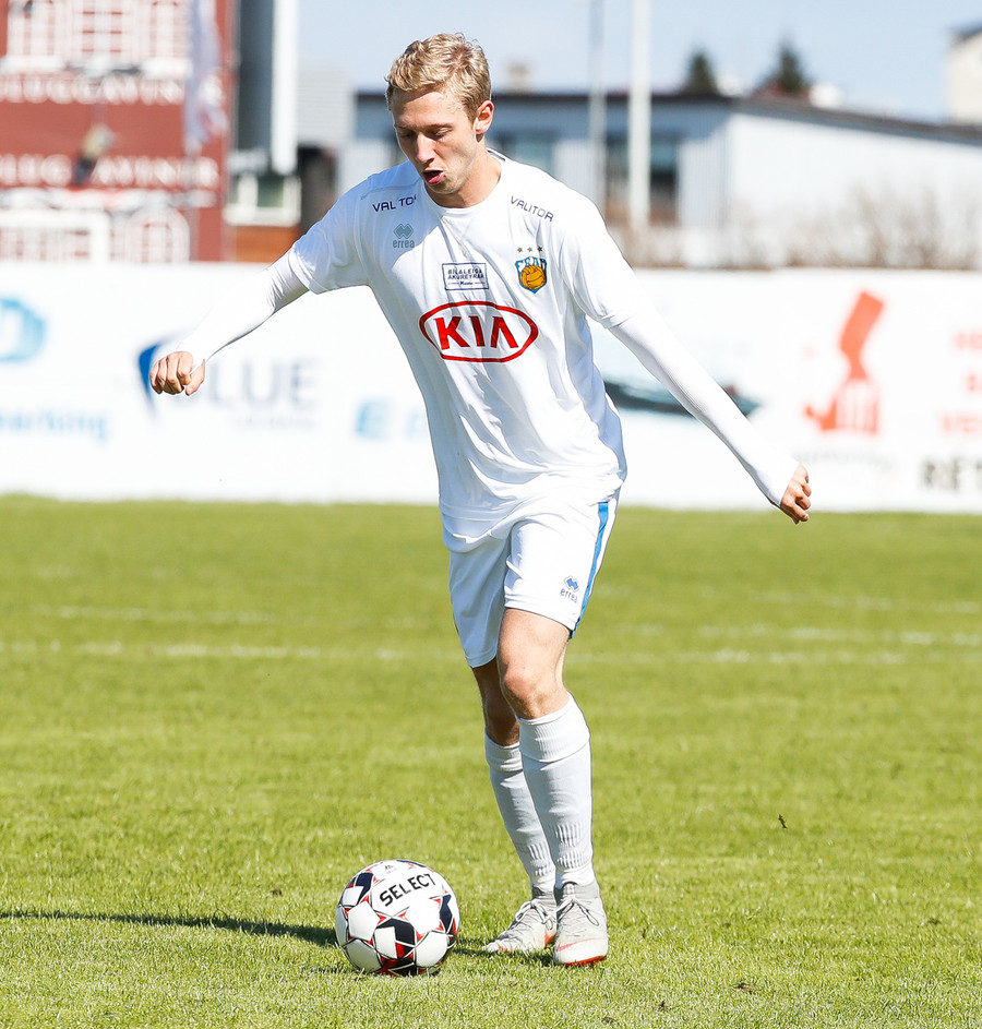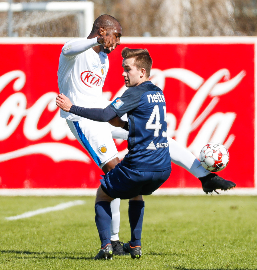 Adolf Bitegeko kemur með sterkan sprett upp hægri kantinn og ætlar sér sov að gefa fyrir en stúkan tók "æjiiii" svo léleg var sú sending.