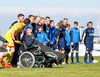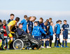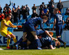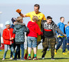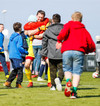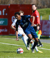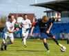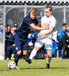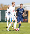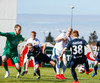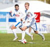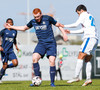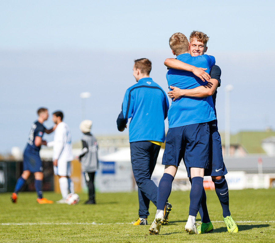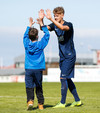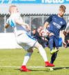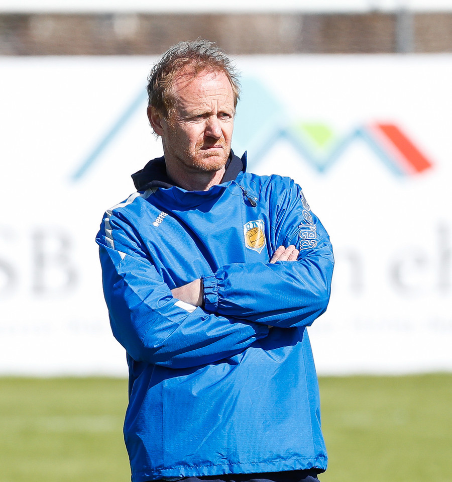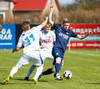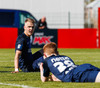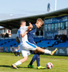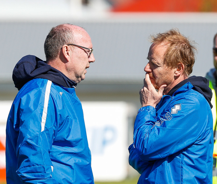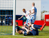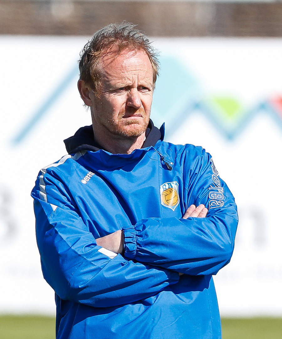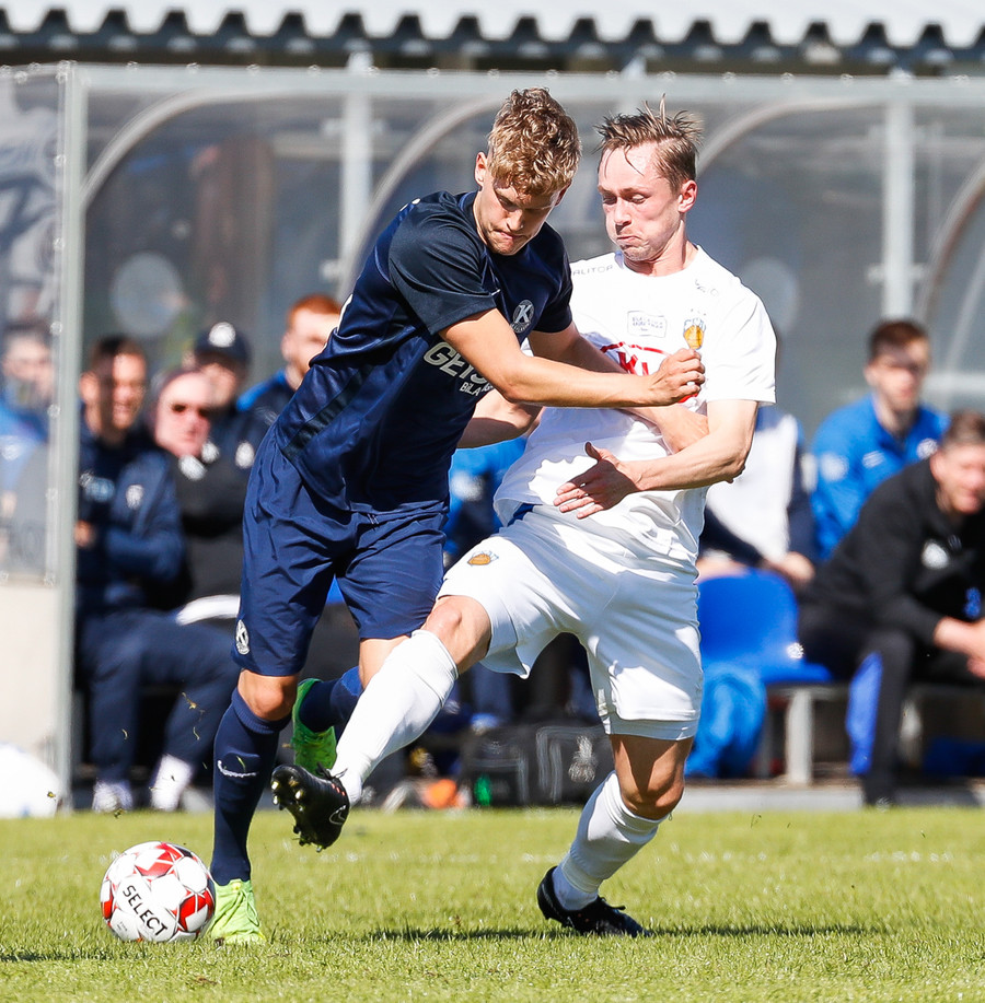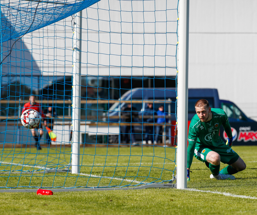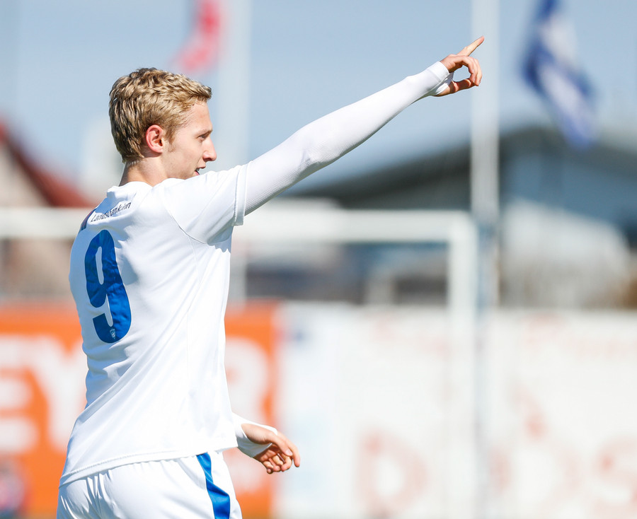 Hvað í.....? Það kemur góður bolti inn á teig mér sýnist Adolf ná skallanum en í samherja og það fer boltinn á Ólaf í markinu!
