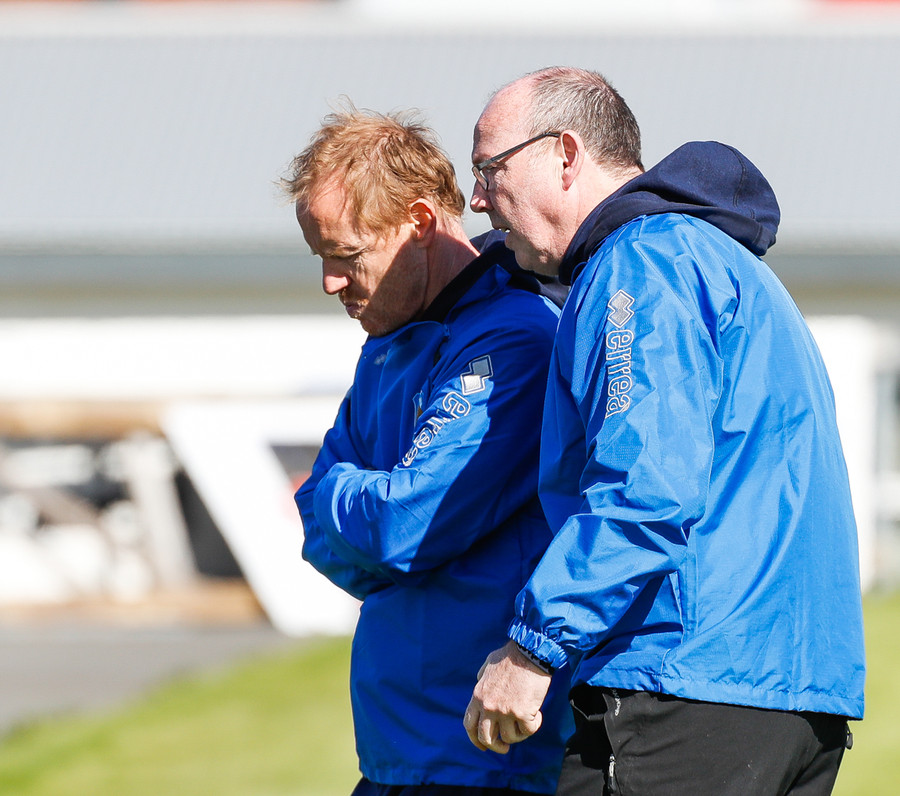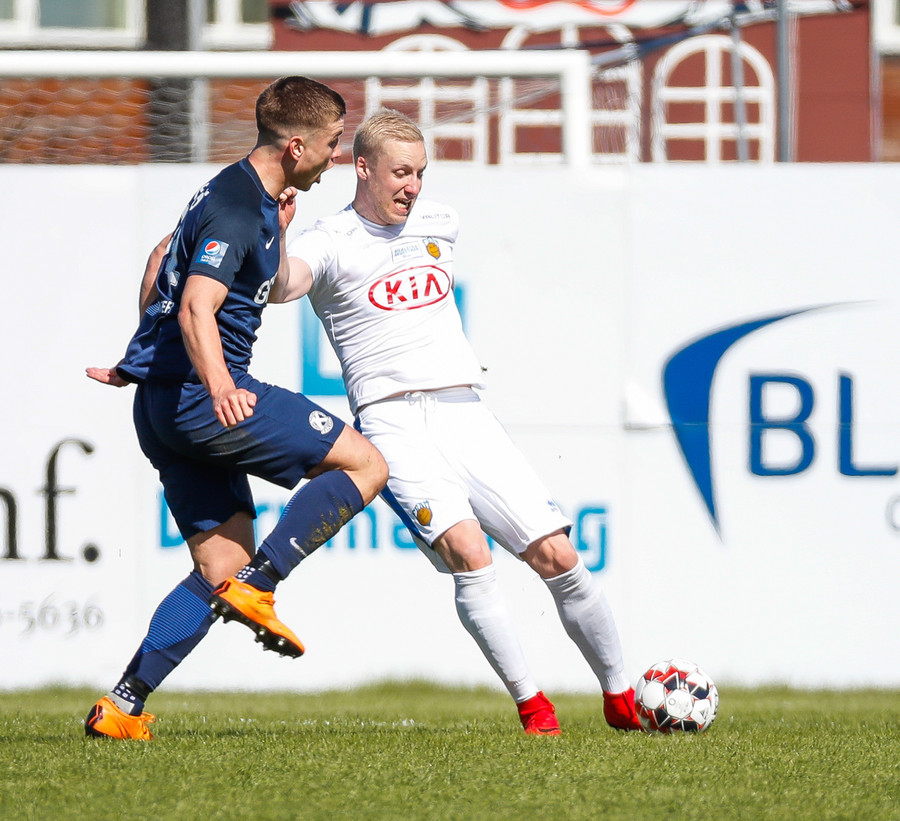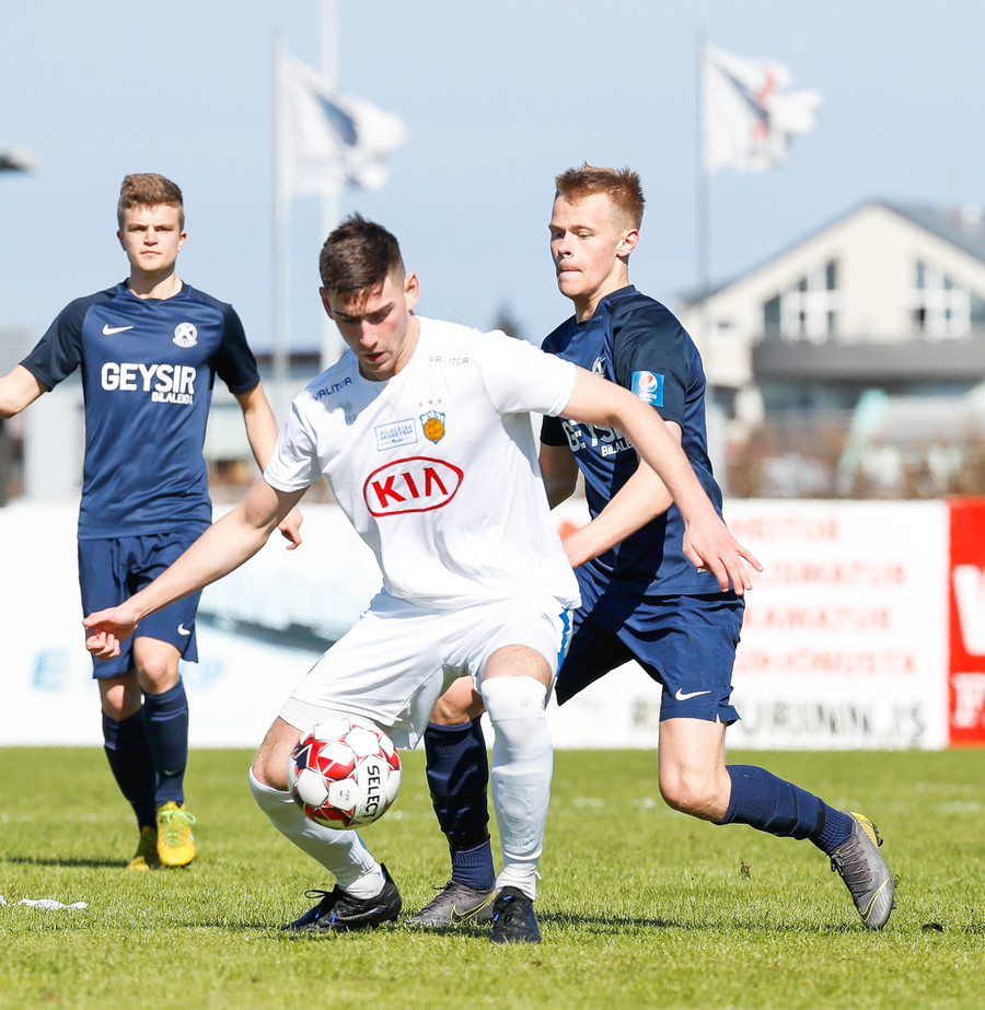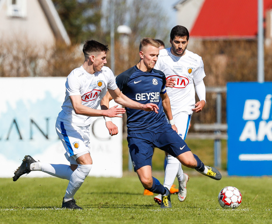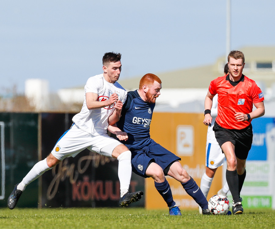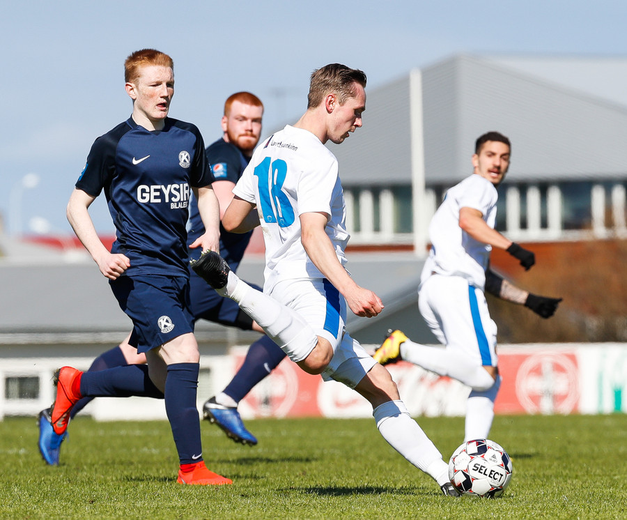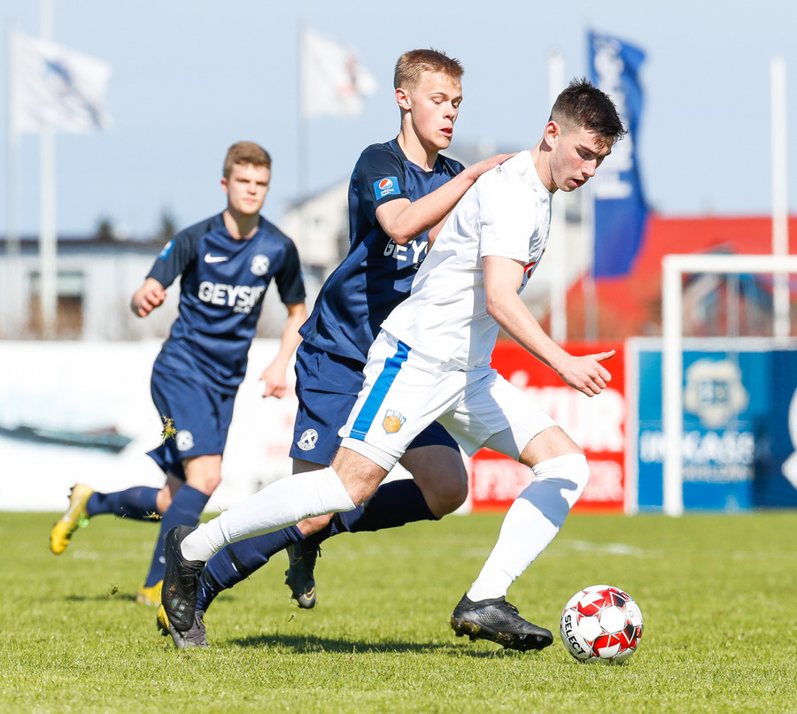 Frábær pressa hjá Tómasi og uppsker innkast út frá því sem Rúnar Þór ætlar að kasta langt inn á teiginn. Það skapast mikil hætta í teignum en gestirnir ná að hreinsa að lokum.