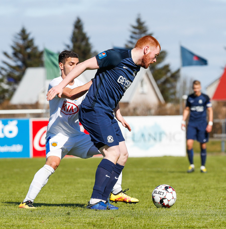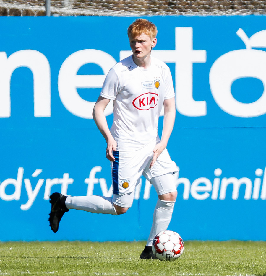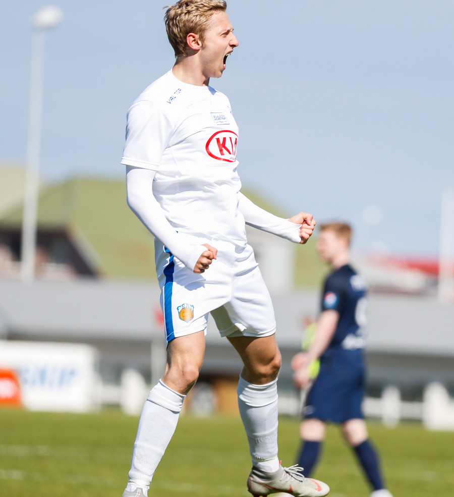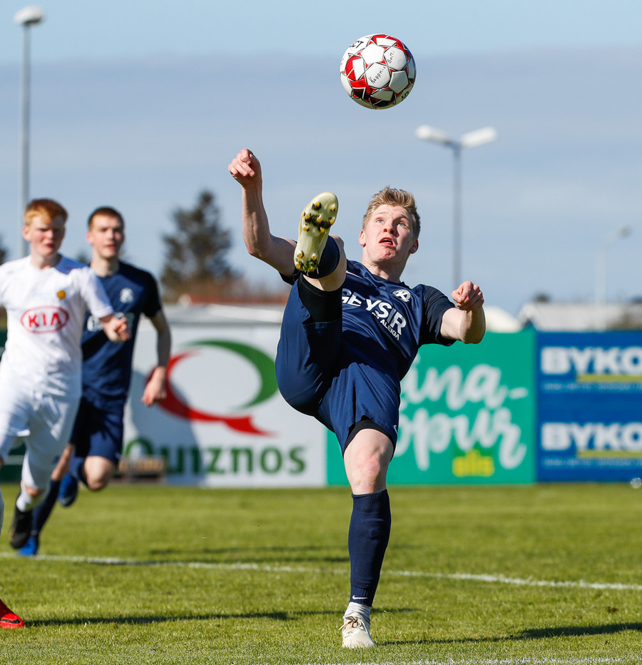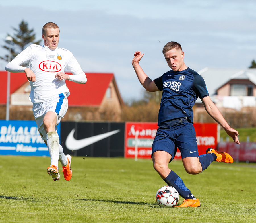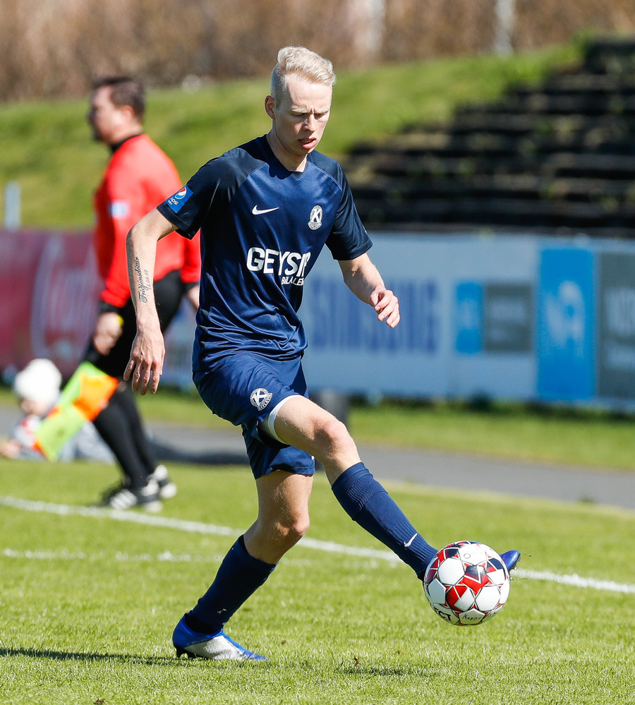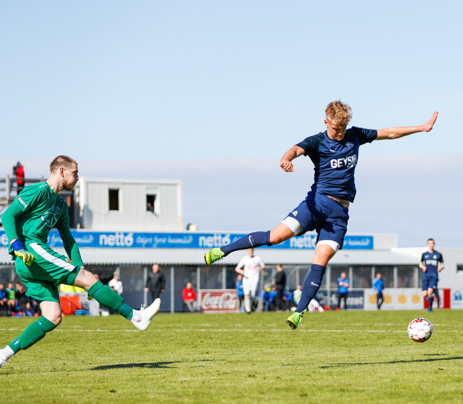 Seinni spyrnan var ekki jafn góð og skalli Gunnólfs á nær fer framhjá markinu. Hann gat ekkert gert við þennan skalla úr þessari stöðu
