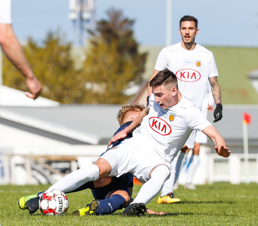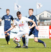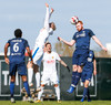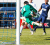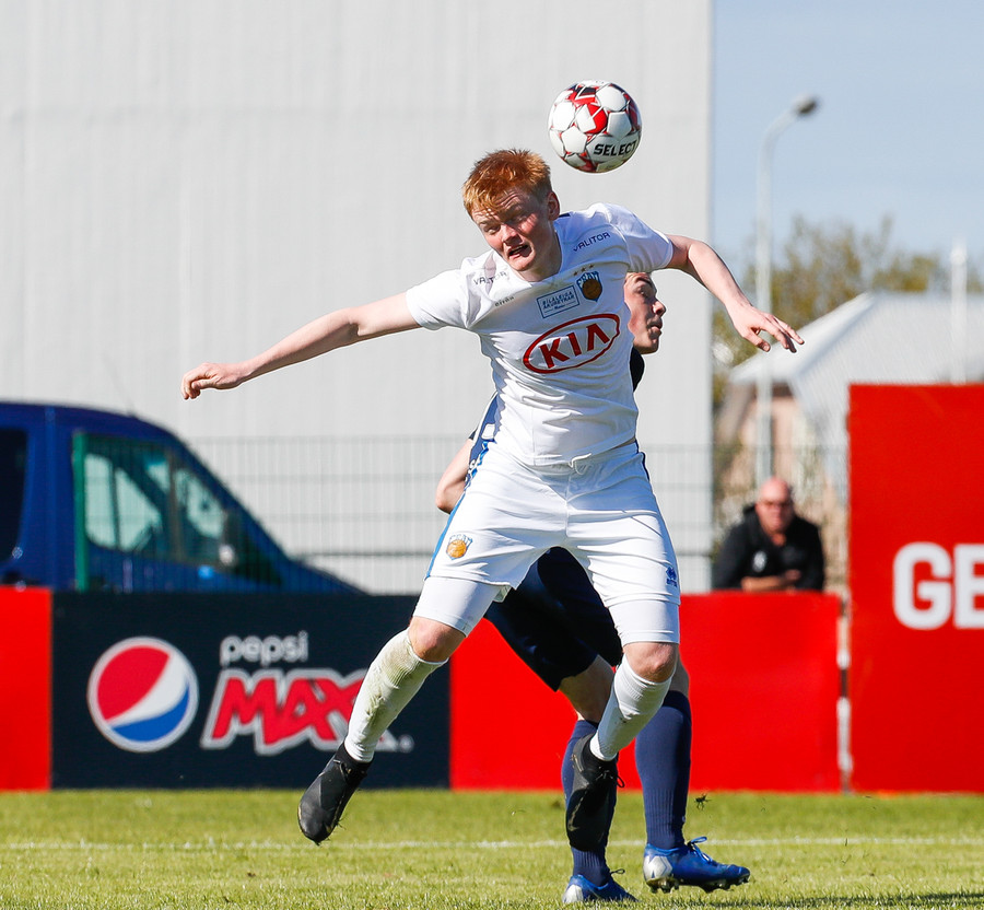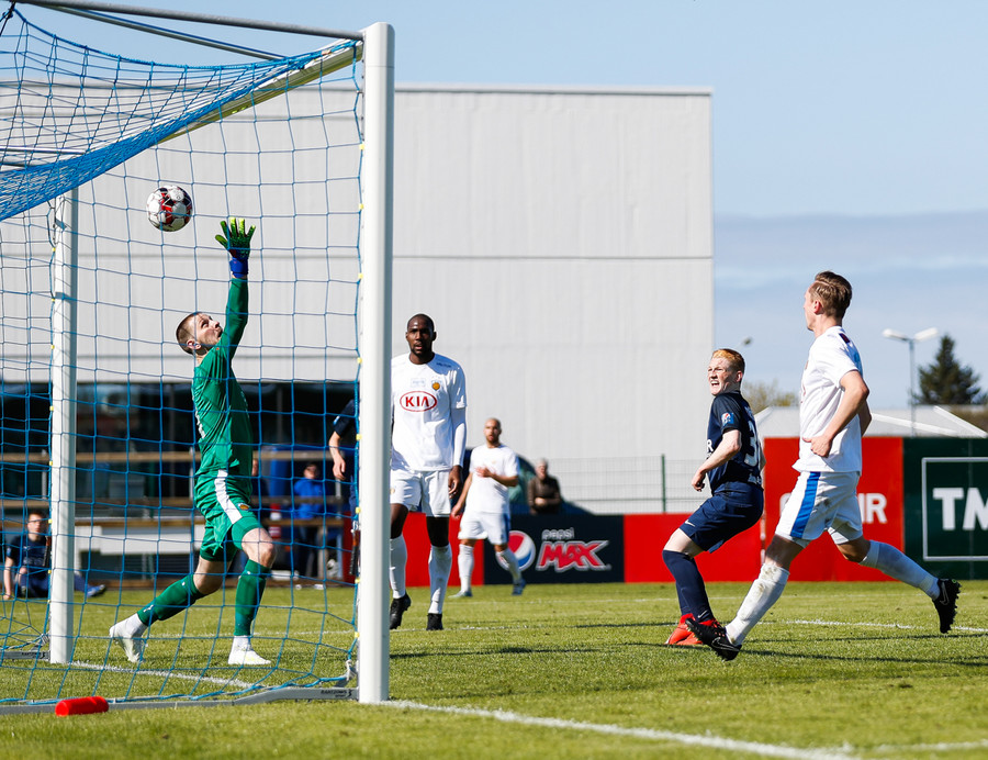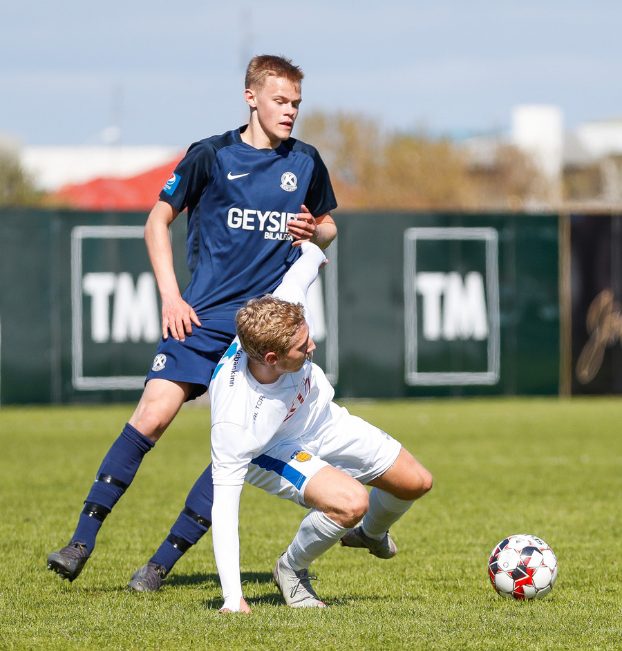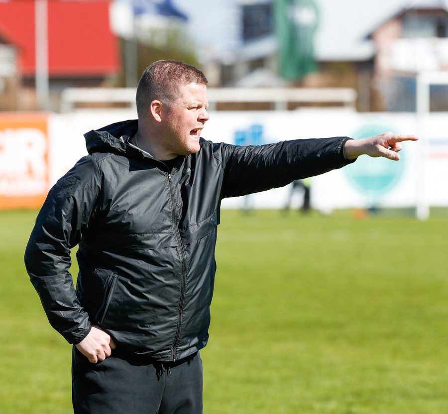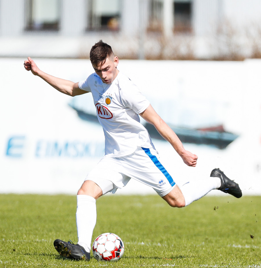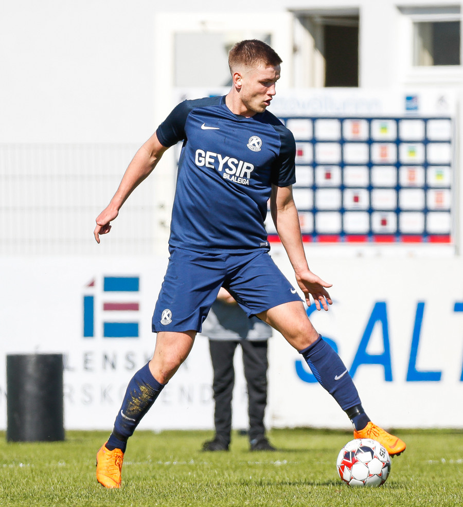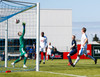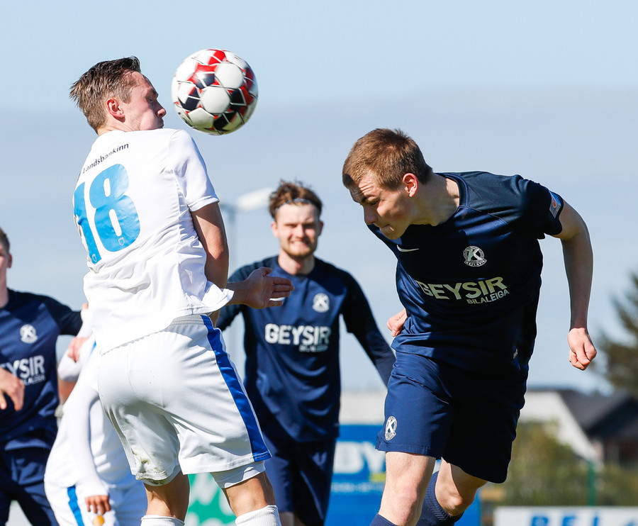 Seinni spyrnan var ekki jafn góð og skalli Gunnólfs á nær fer framhjá markinu. Hann gat ekkert gert við þennan skalla úr þessari stöðu
