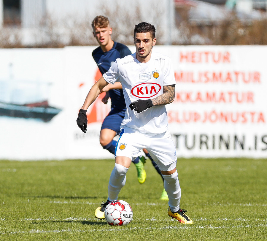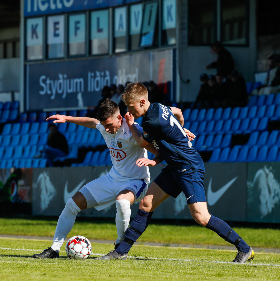 Keflvíkingar með skemmtilega sókn sem endar með því að Tómas Óskarsson reynir við fyrirgjöf en Marcus Mendes Viera nær að hreinsa boltanum í burtu á síðustu stundu áður en sóknarmenn Keflavíkur komast í boltann.