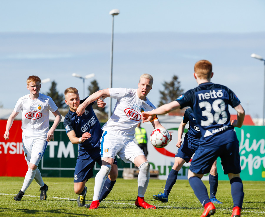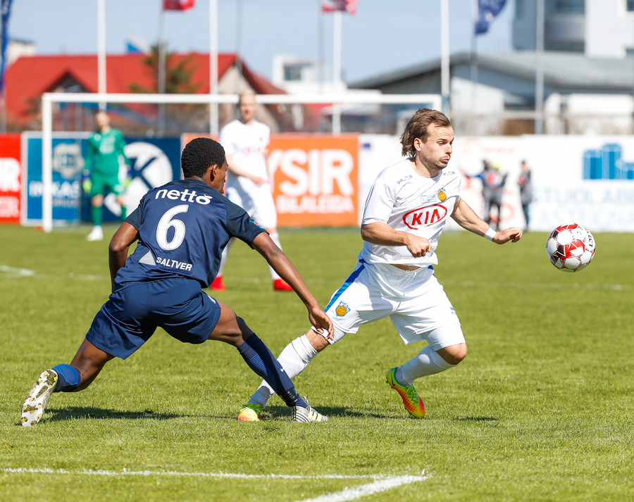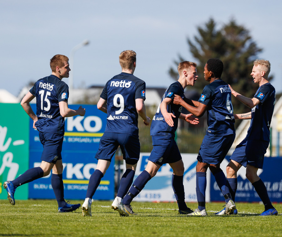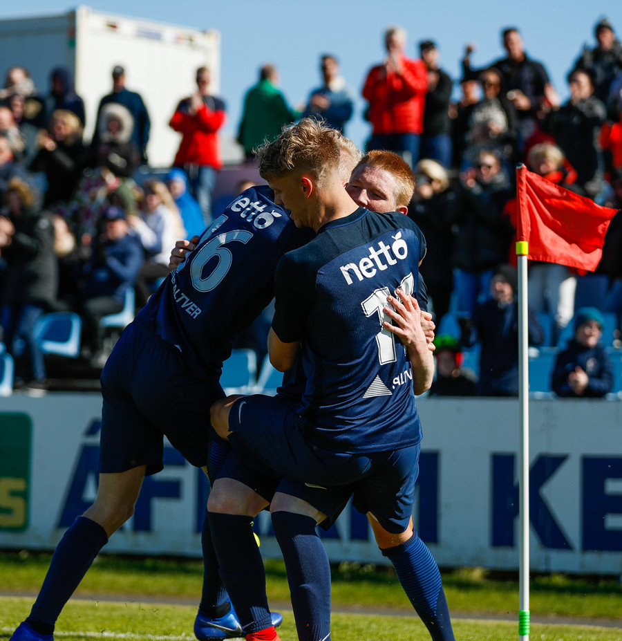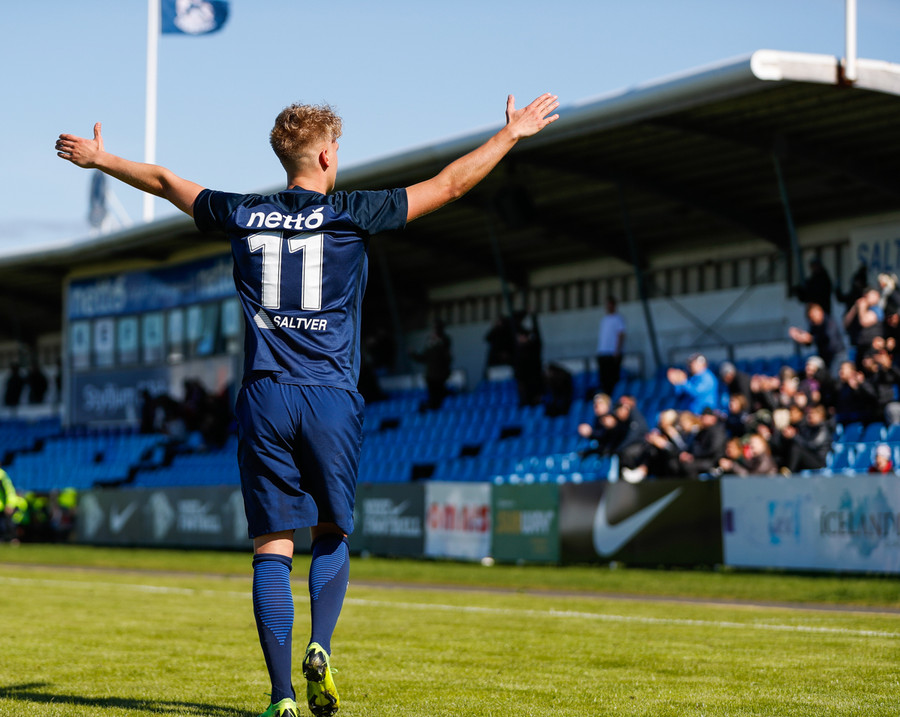 Keflavík fá hornspyrnu og þegar hun er tekinn flautar Elías til leiksloka og Keflavík vinnur á Nettó vellinum!