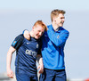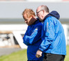 Það er rosaleg blíða í Keflavík og vel heitt í blaðamannastúkunni. Væri rosalega gott að eiga eina ískalda Coke núna til að drekka.