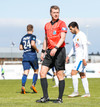 Adam Ægir kemur alltof seint inn í Helga og ætti að uppskera gult spjald en Elíast sleppir honum í þetta skiptið. Fram á aukaspyrnu á miðjum vallarhelmingi Keflavík.