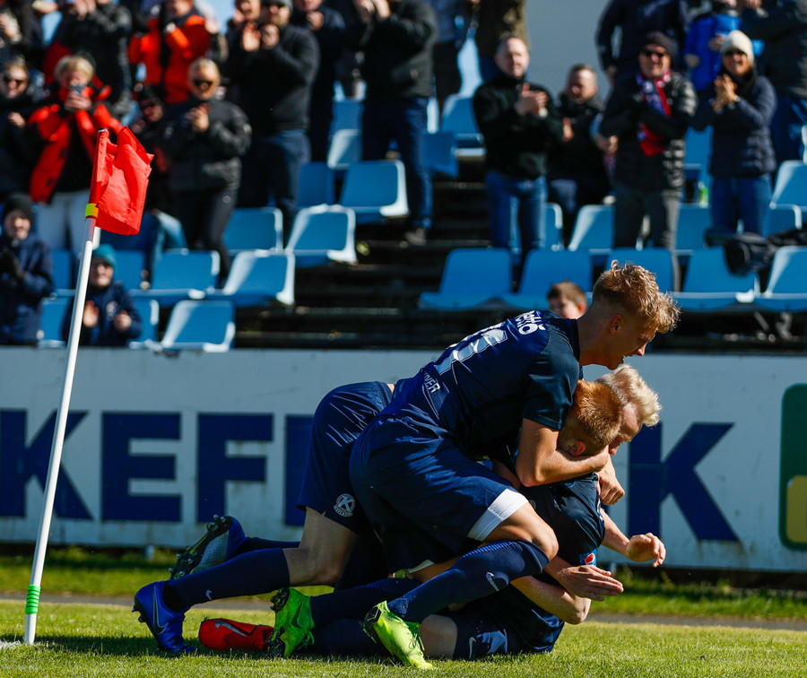Keflavík fá hornspyrnu! Þetta byrjar mjög vel hérna í Sunny Kef!