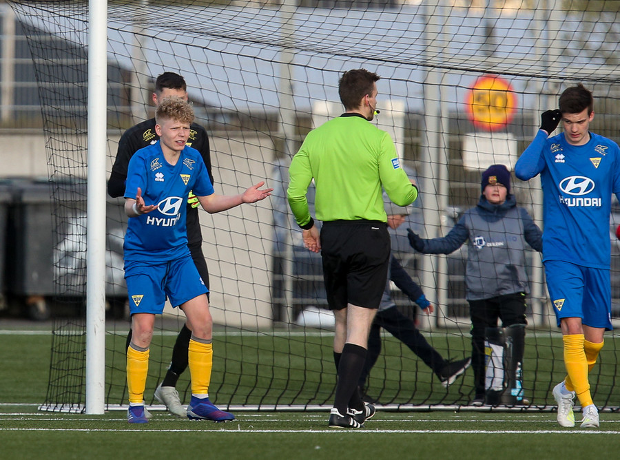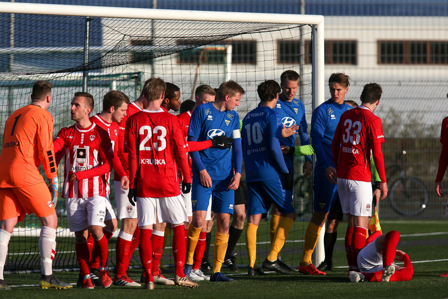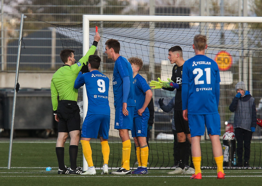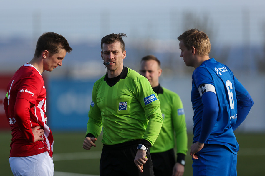 Undir lok leiksins fór eitthvað að gerast eftir að leikurinn hafði verið frekar tíðindalítill. Menn fóru að takast á og spjöldin komu í kjölfarið.