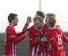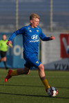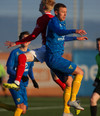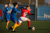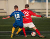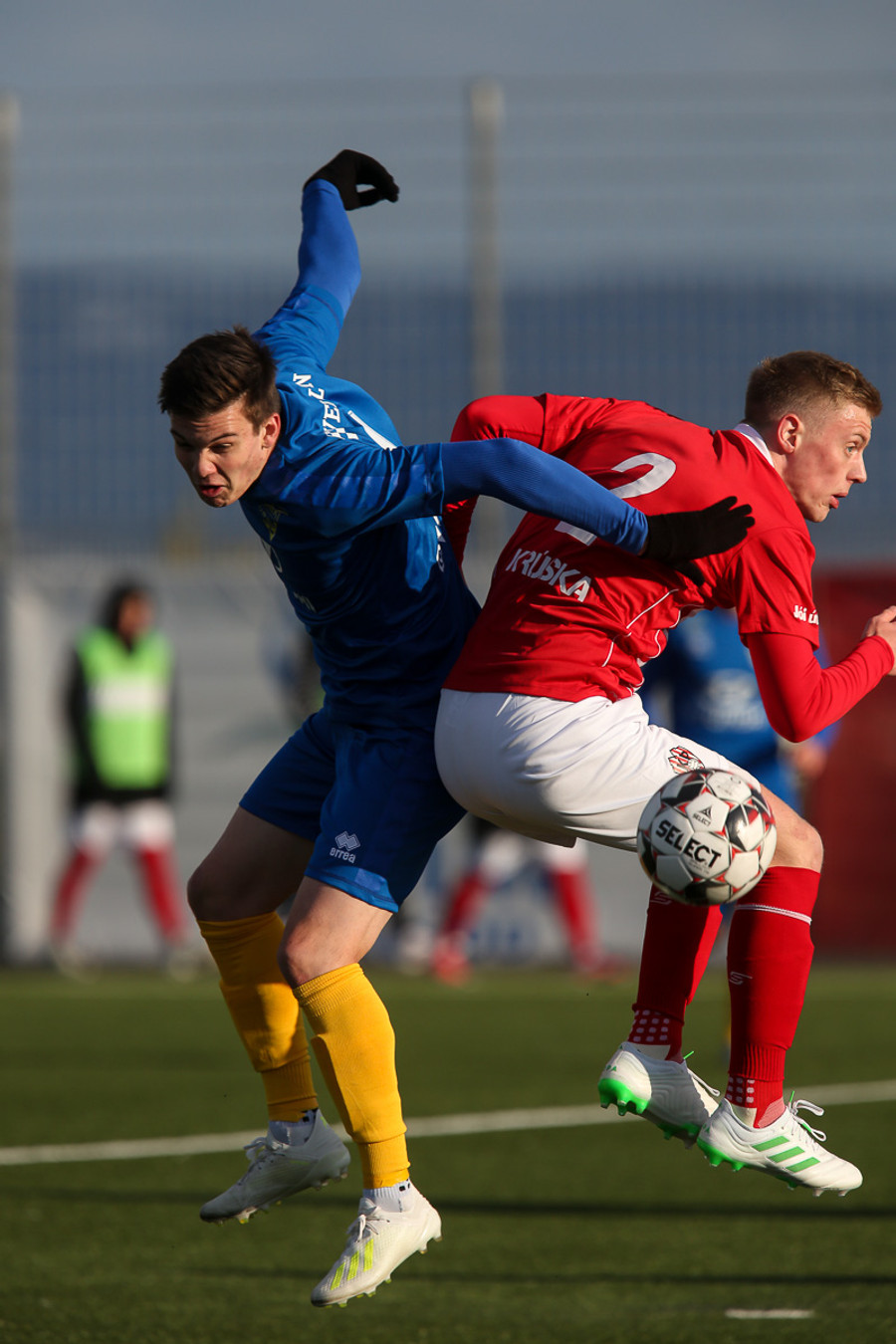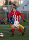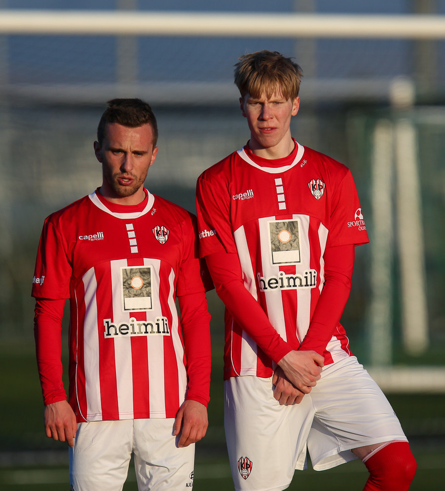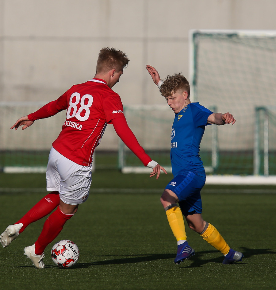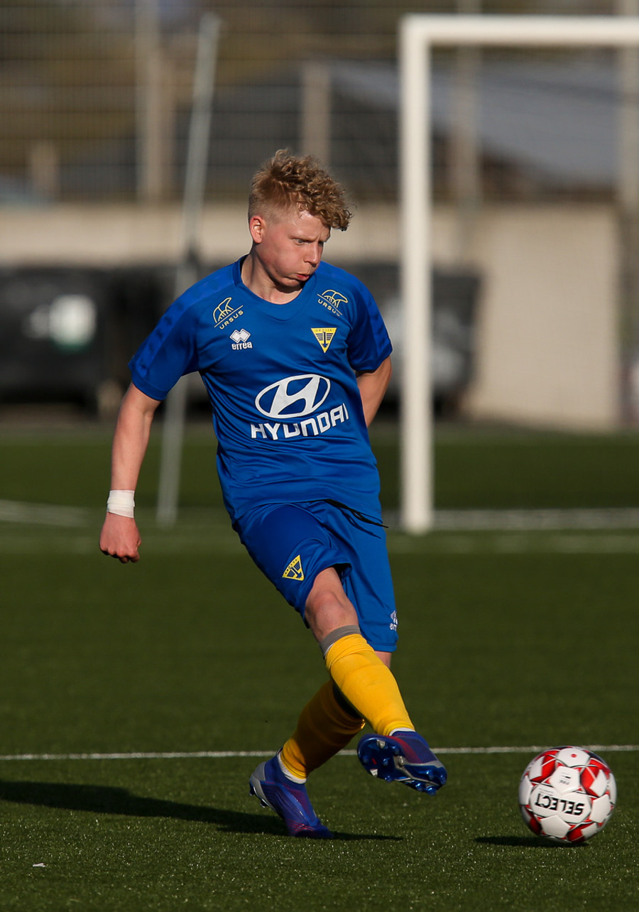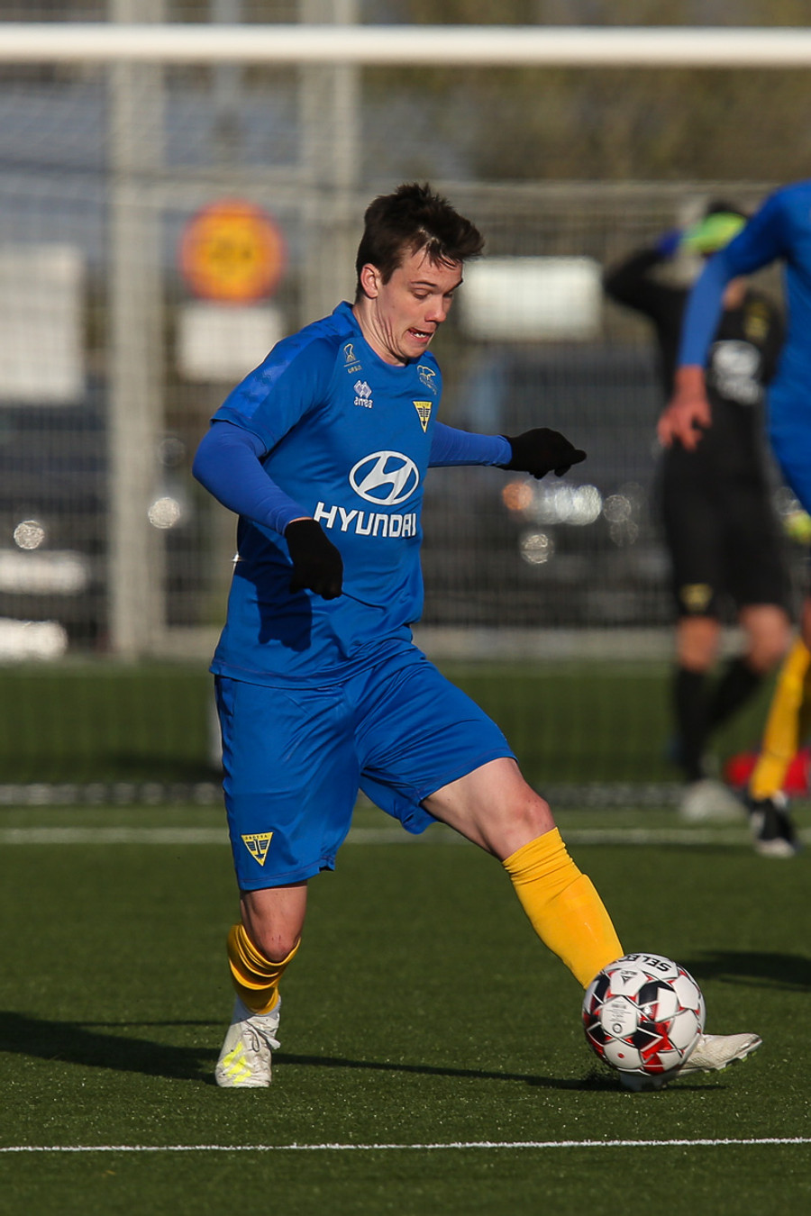 Birkir Þór rekur boltan upp miðjuna. Gefur hann síðan á Aron Þórð sem skýtur að marki en Hákon ver.