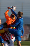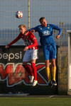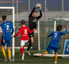 Pétur Theódór á geggjaðan skalla alveg upp í samskeytin sem Arnar Darri ver.