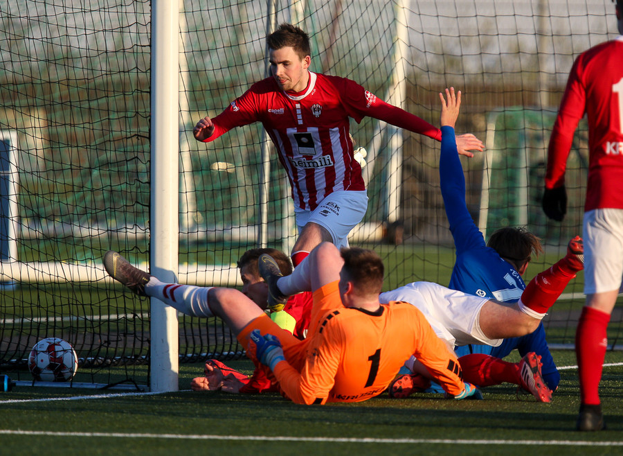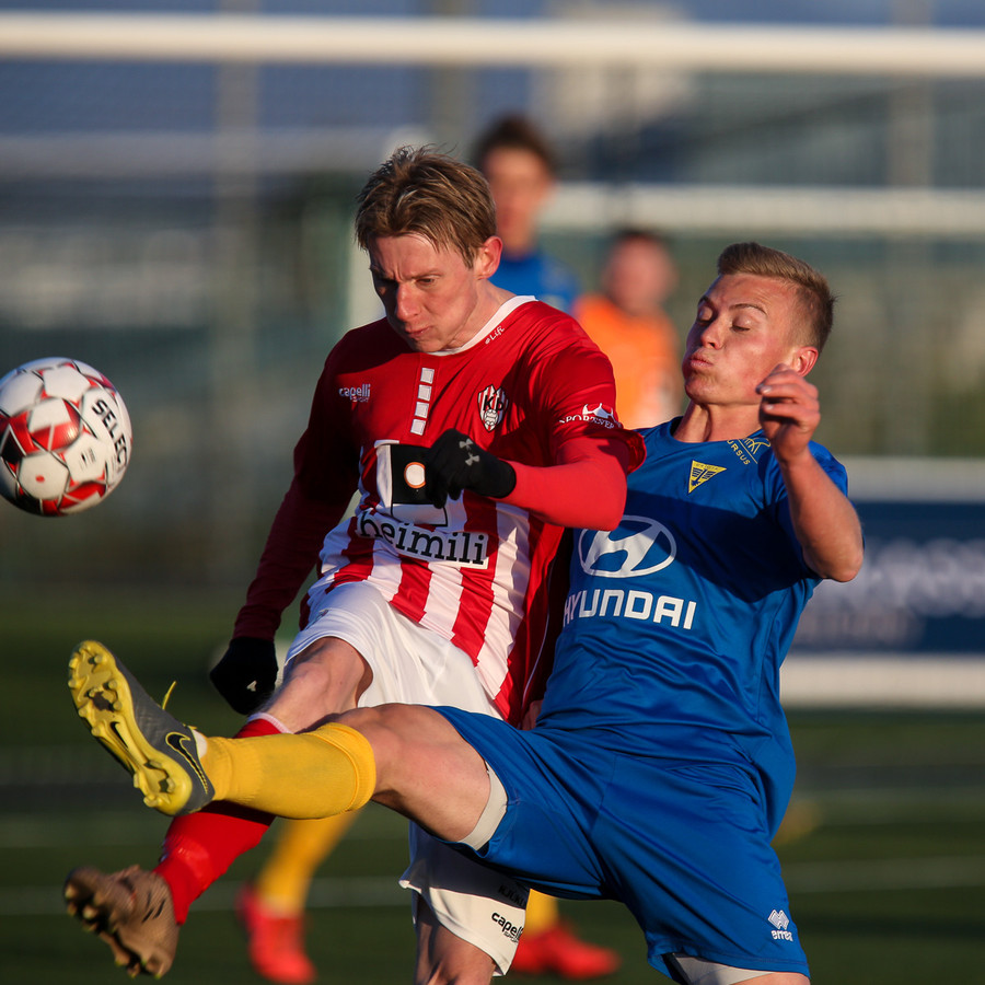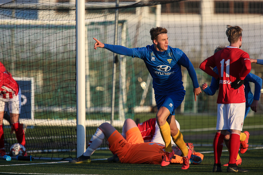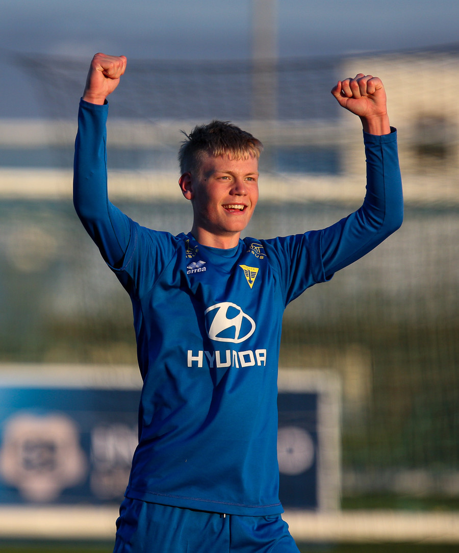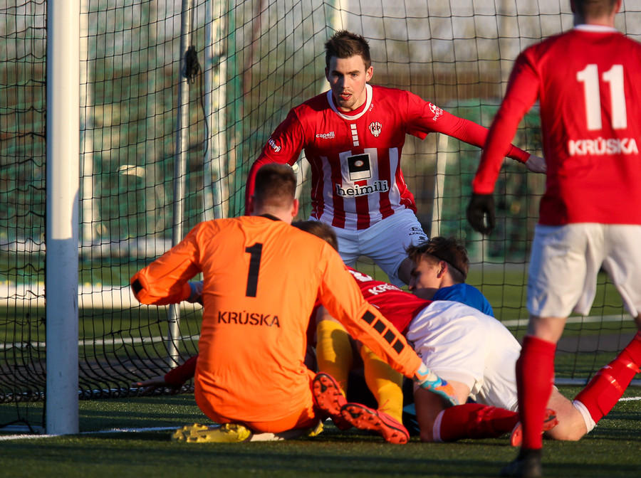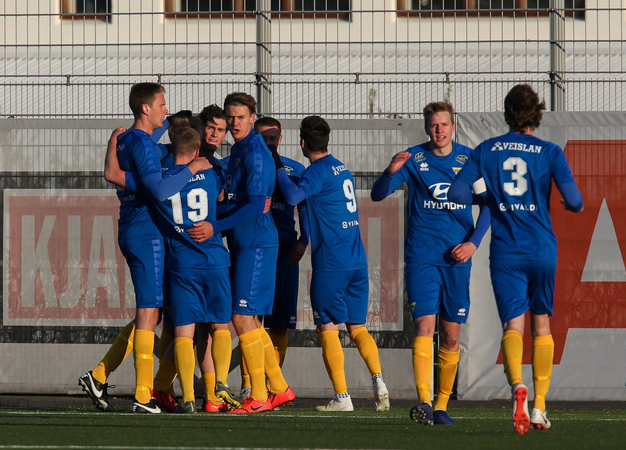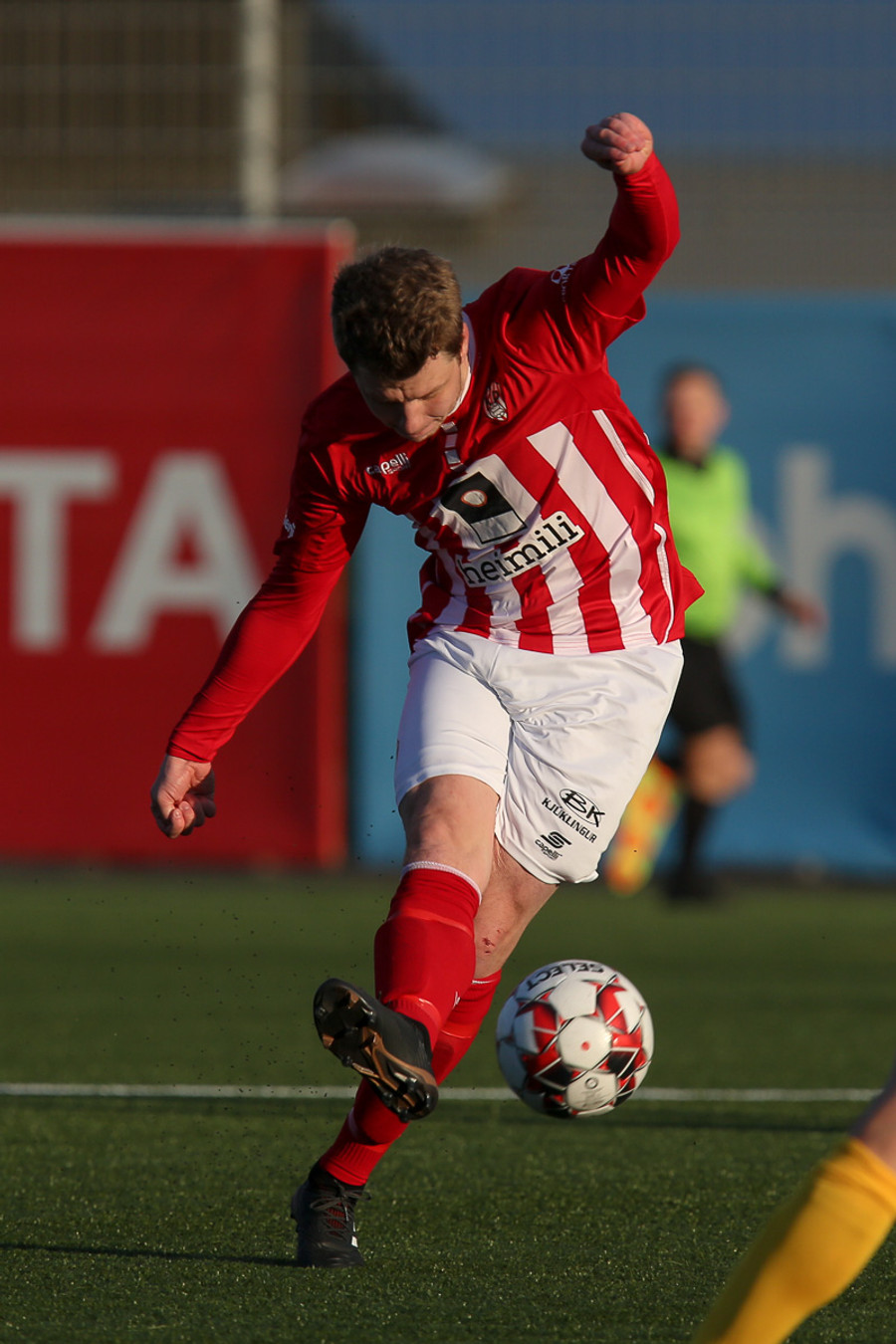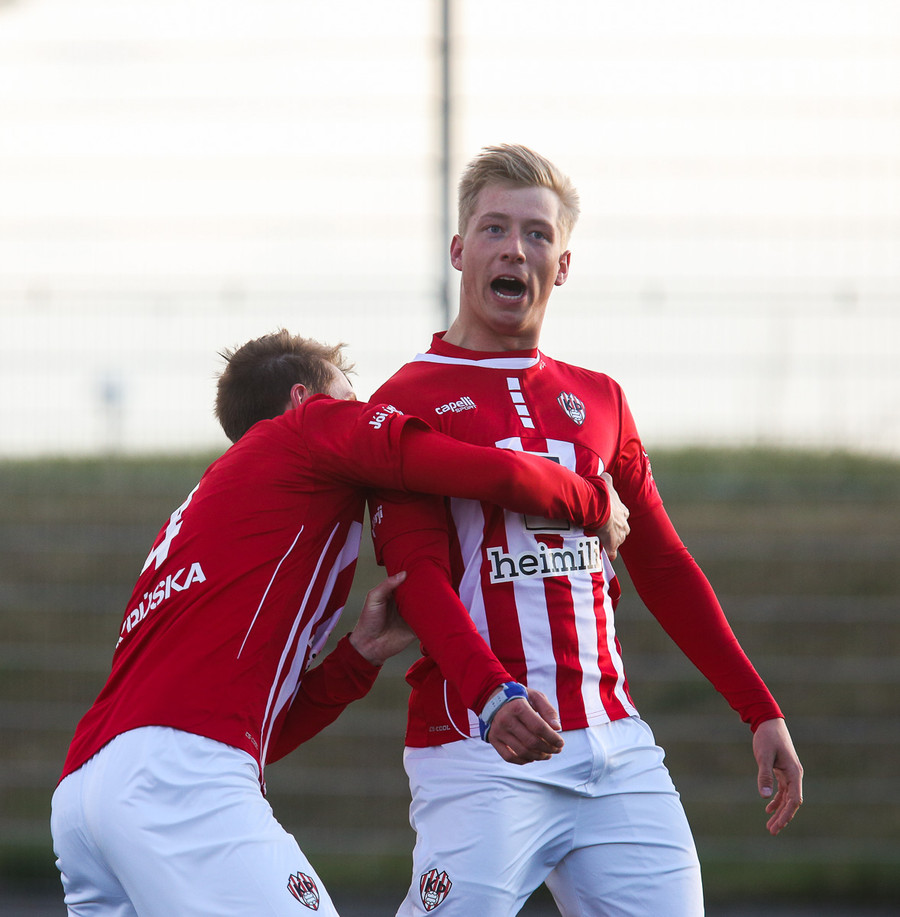 Jasper kemst upp kantinn þar sem hann sendir hann á Ágúst sem er einn inn í vítateig. Hann rennir honum framhjá Hákoni í markinu. Vel klárað!