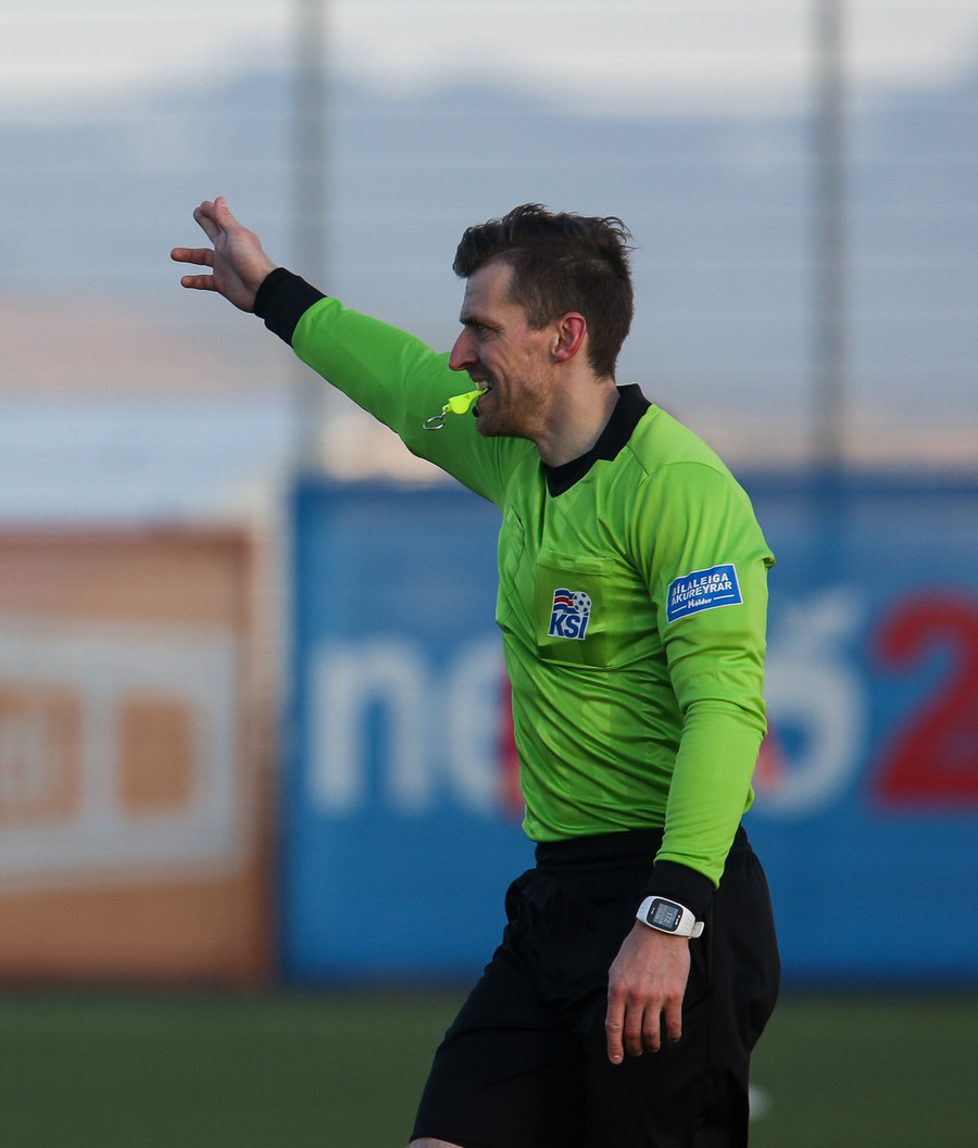 Dómarinn var ekki lengi að hugsa sig um og benti strax á punktinn.