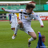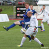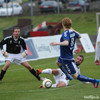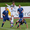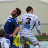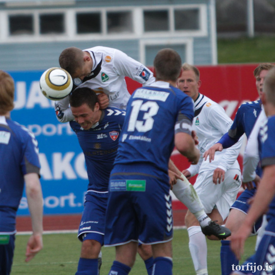 Fyrsta teljandi sókn BÍ/Bol. Sigþór Snorrason með skalla á markið en auðvelt viðureignar fyrir Ingvar Kale í marki heimamanna.