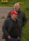 Fyrsta hornspyrna Þórs í leiknum. Jónas röltir að hornfánanum.