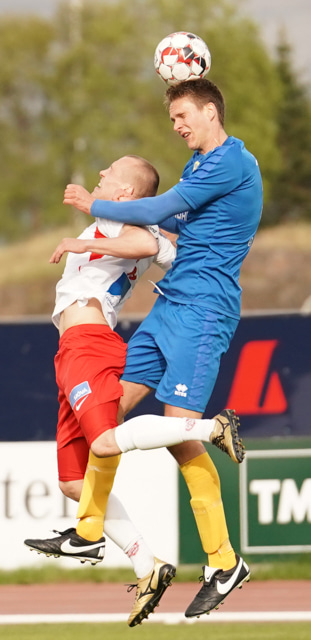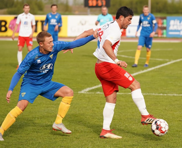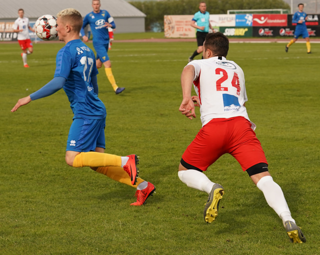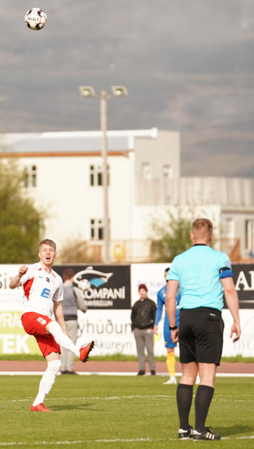 Jóhann Helgi reynir skot fyrir utan teig en Bjarki fer fyrir það. Hornspyrna sem Þór á.