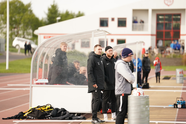 Það er ekki alveg bongó en 10 stiga hiti og sólin lætur sá sig við og við. Völlurinn lítur hins vegar hrikalega vel út! Veðrið hefur leikið við grasvellina hér fyrir norðan síðustu vikur.