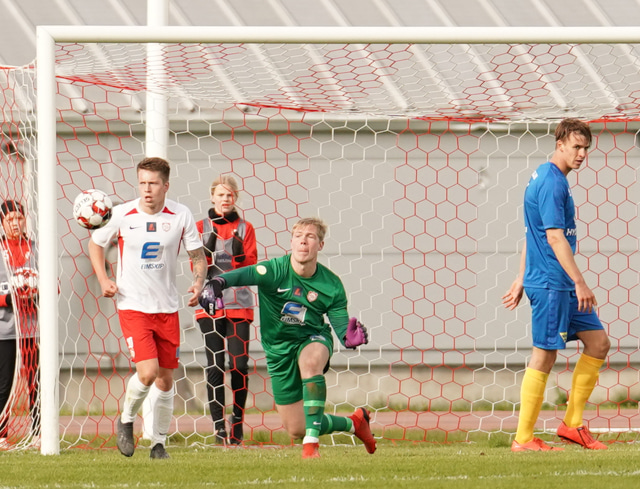 Þór er að ná fínum boltum inn á teiginn en Hákon ótrúlega öruggur á alla bolta og grípur þá flesta.
