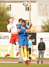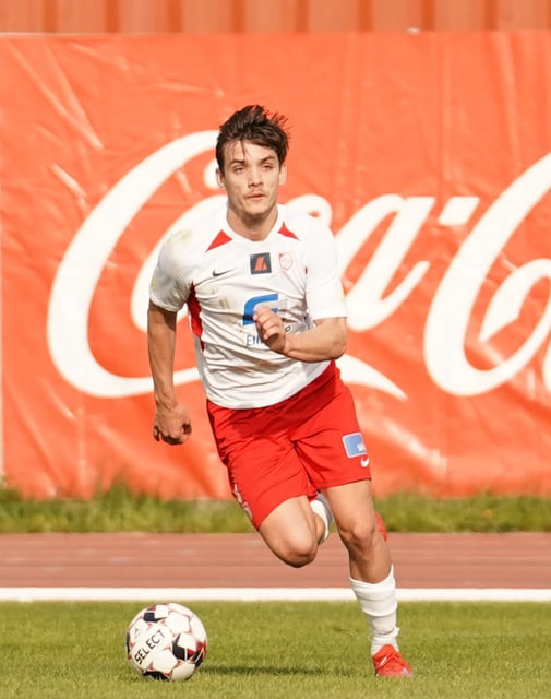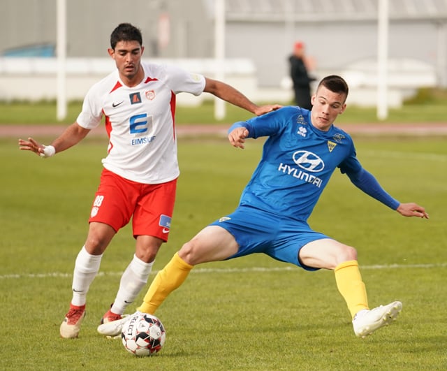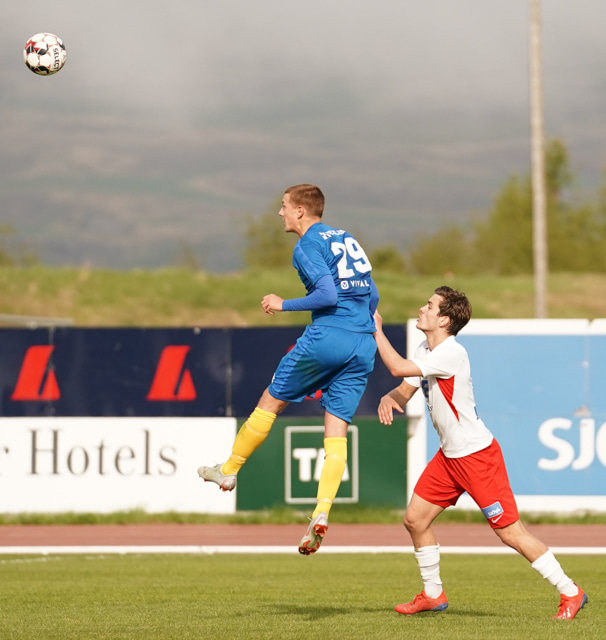 Axel fær boltann inn á eigin vallarhelming og leggur af stað upp völlinn en það var enginn samherji sem fylgdi honum. Það má segja að hann hafi svo sótt sér aukaspyrnu.