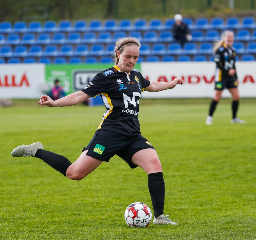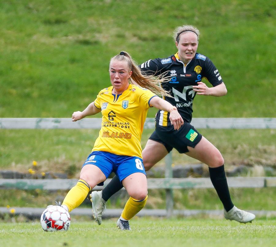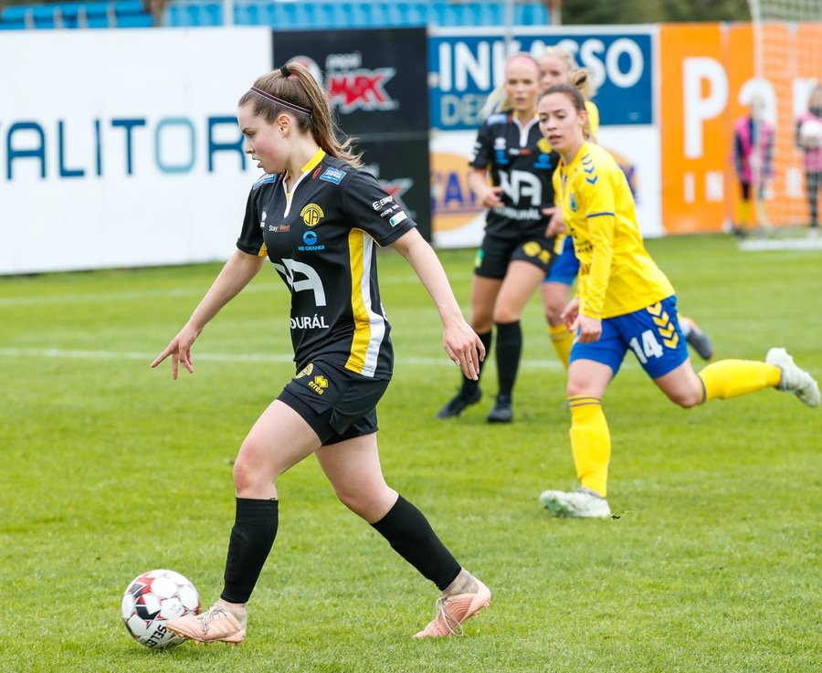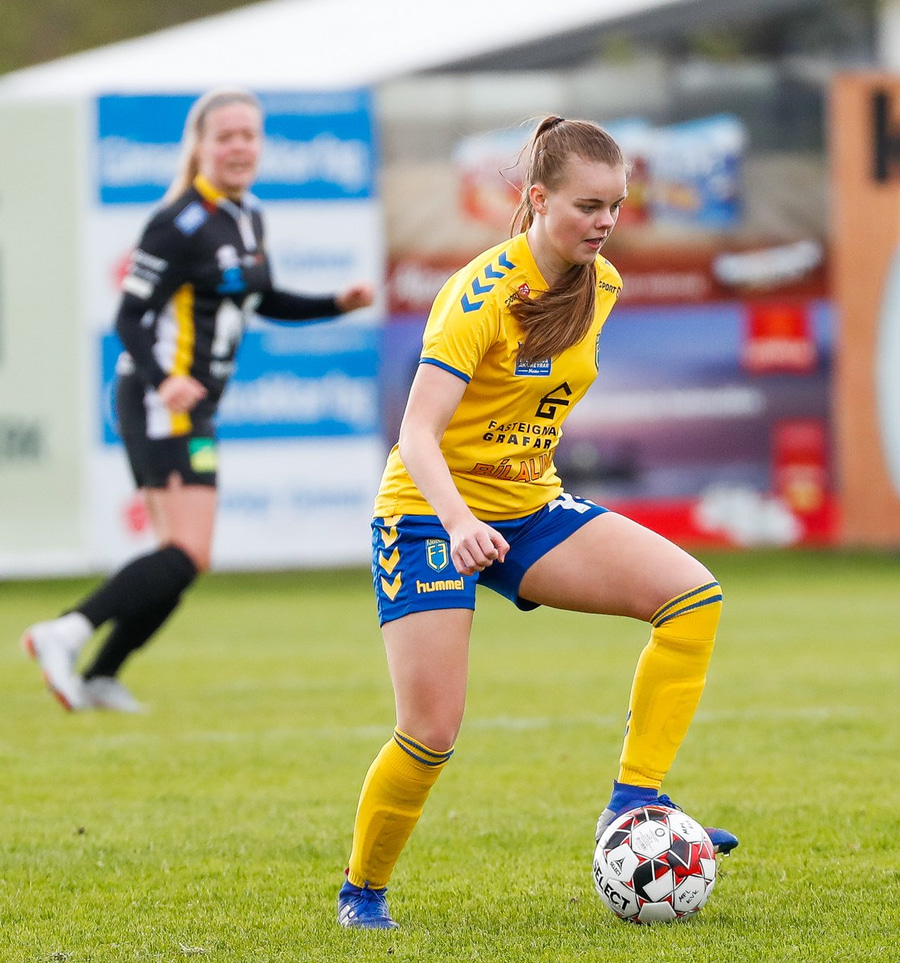 Kristjana tekur aukaspyrnu af miðjunni inn á teiginn, Íris reynir að skalla en boltinn fellur fyrir lappirnar á Evu sem reynir skotið en í varnarmann og þaðan kemst Ástrós í dauðafæri en skýtur beint á Tori!