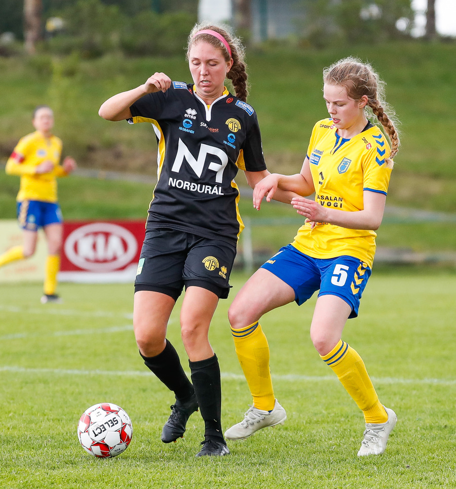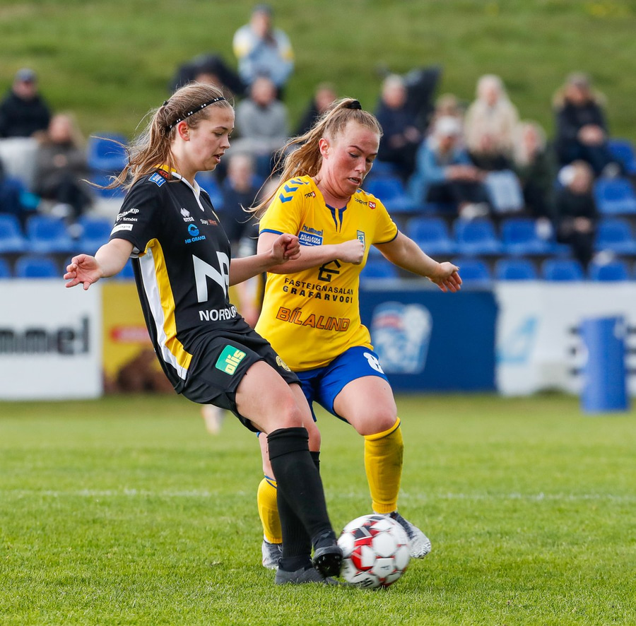 Nú byrja heimastúlkur og sækja í átt að Foldahverfinu.