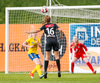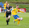 Langur bolti fram frá Fjölni og Sara vinnur kapphlaupið og rennir sér á boltann en Tori er mætt og ver.