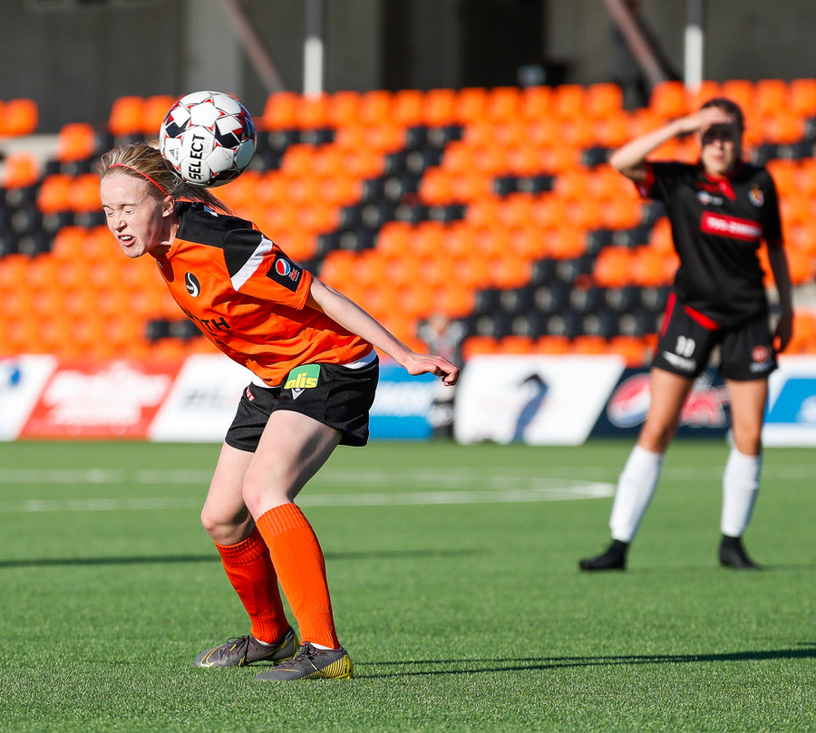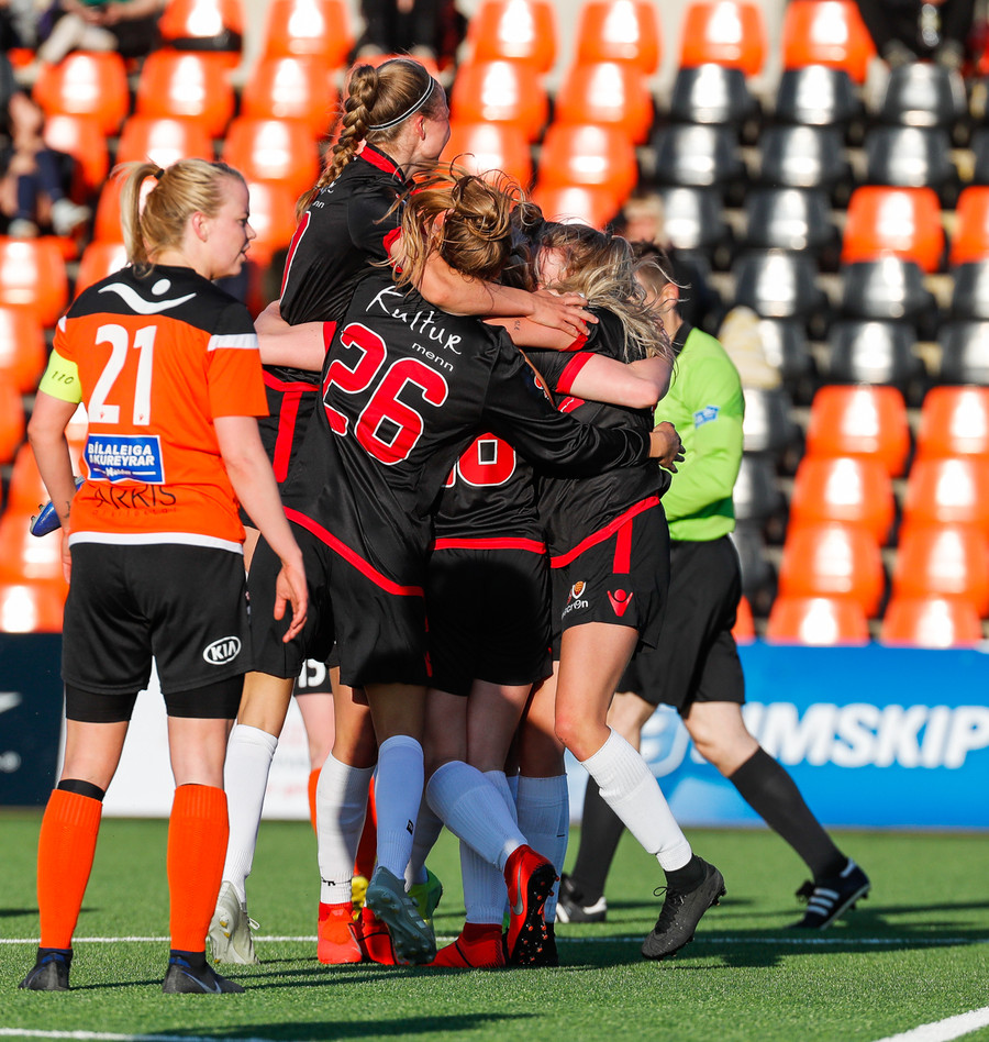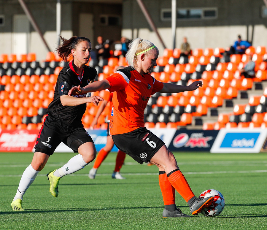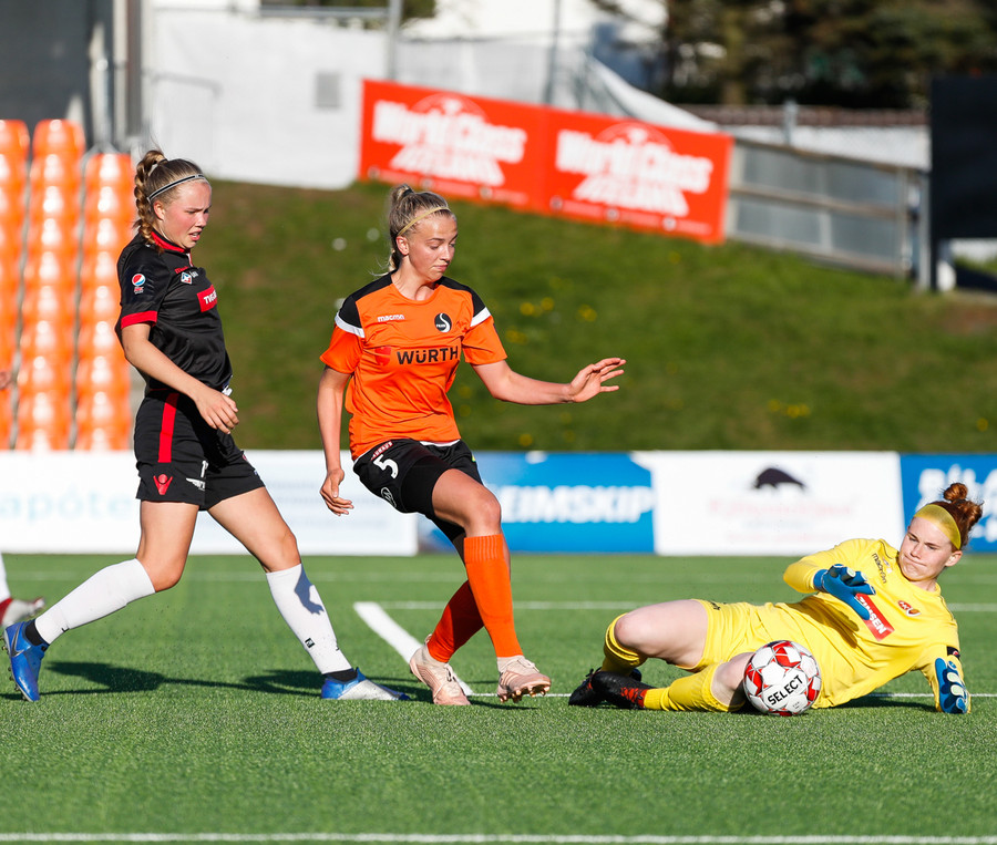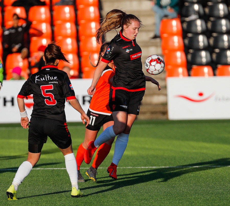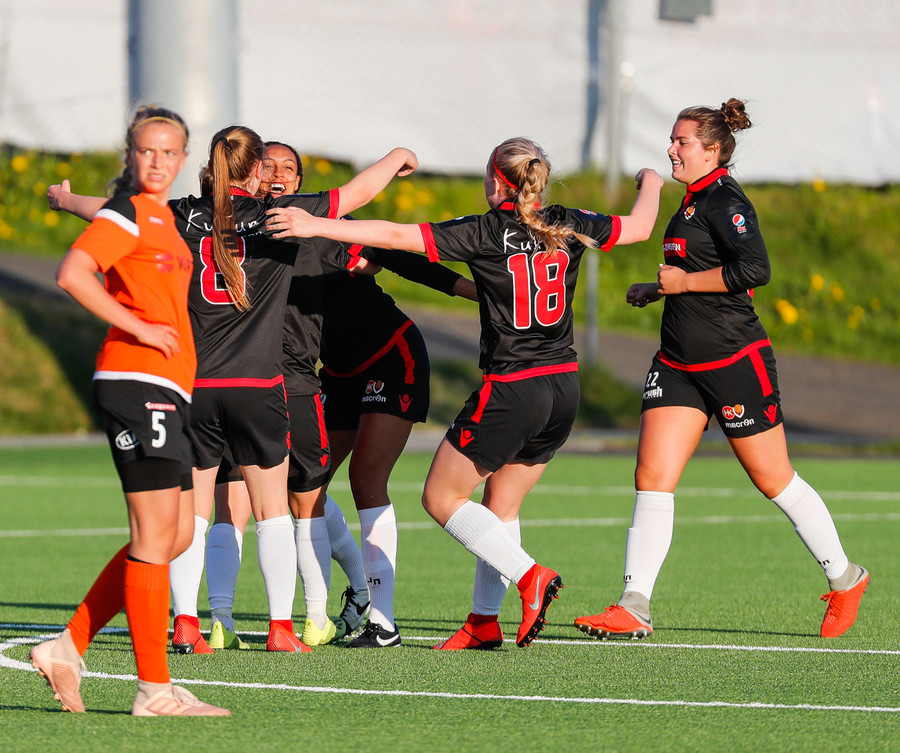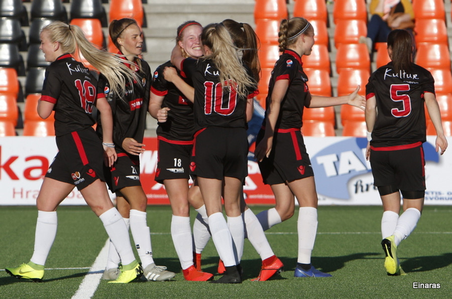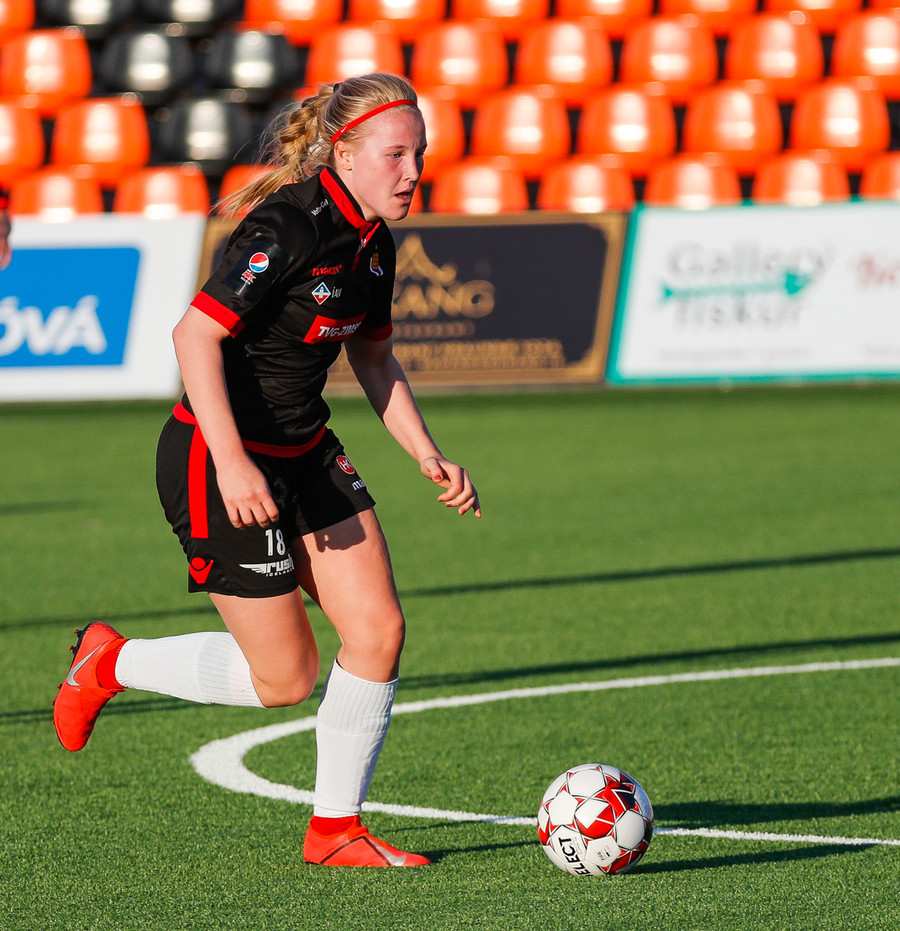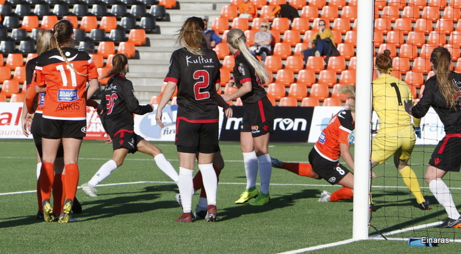 Isabella Eva á fyrsta skot leiksins eftir sendingu frá Karolinu, en það var aldrei hætta. Gestirnir líflegir í byrjun leiks, sækja hratt upp hægri vænginn ég hvert sinn sem þær ná boltanum.