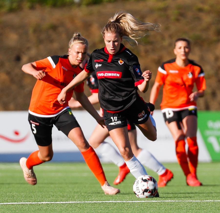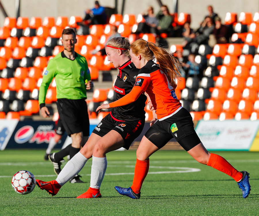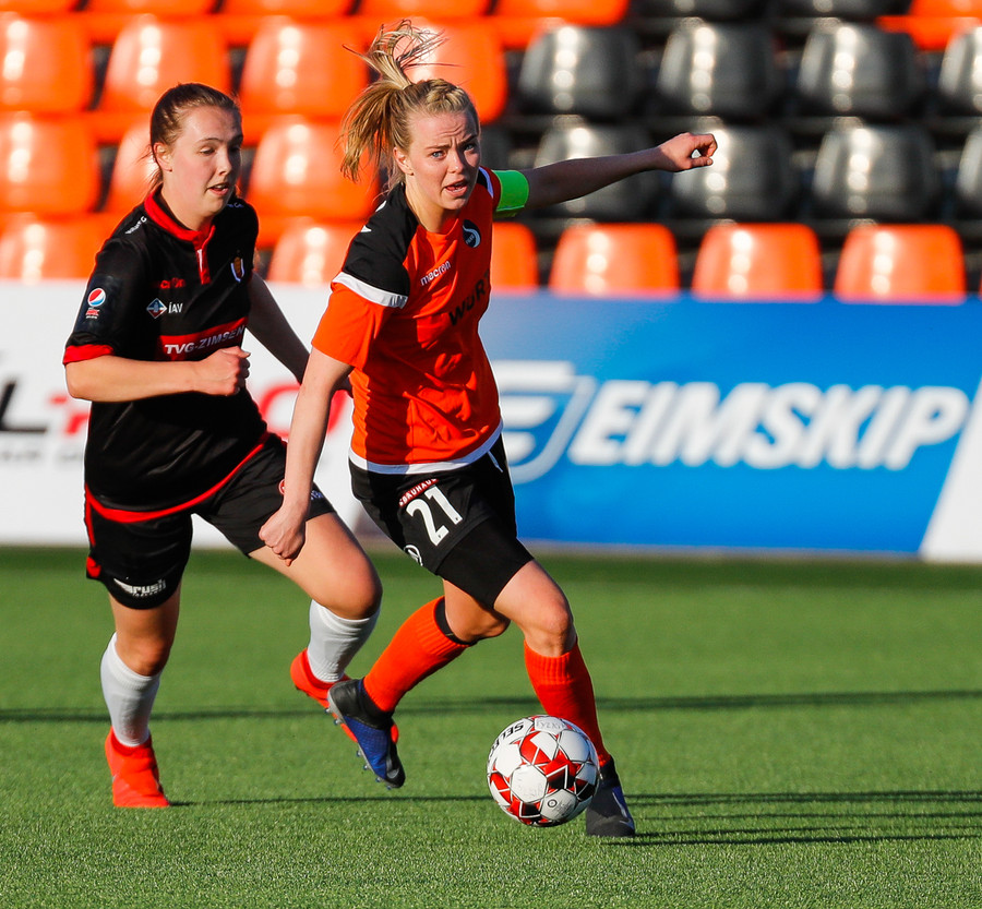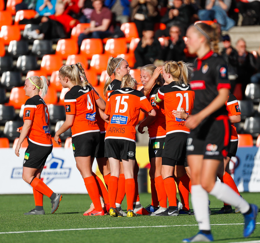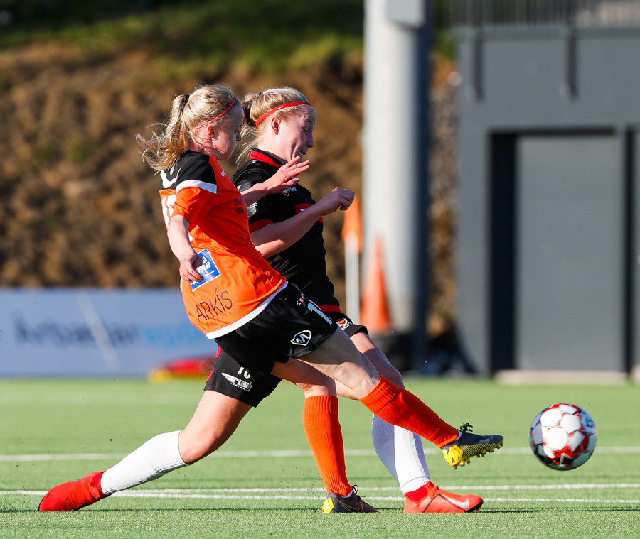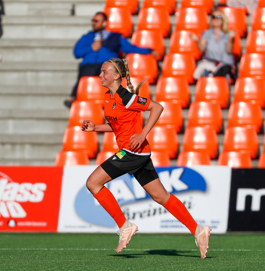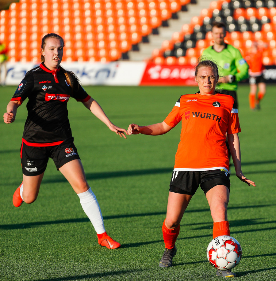 Isabella Eva á fyrsta skot leiksins eftir sendingu frá Karolinu, en það var aldrei hætta. Gestirnir líflegir í byrjun leiks, sækja hratt upp hægri vænginn ég hvert sinn sem þær ná boltanum.