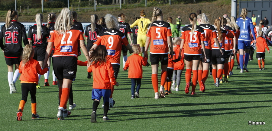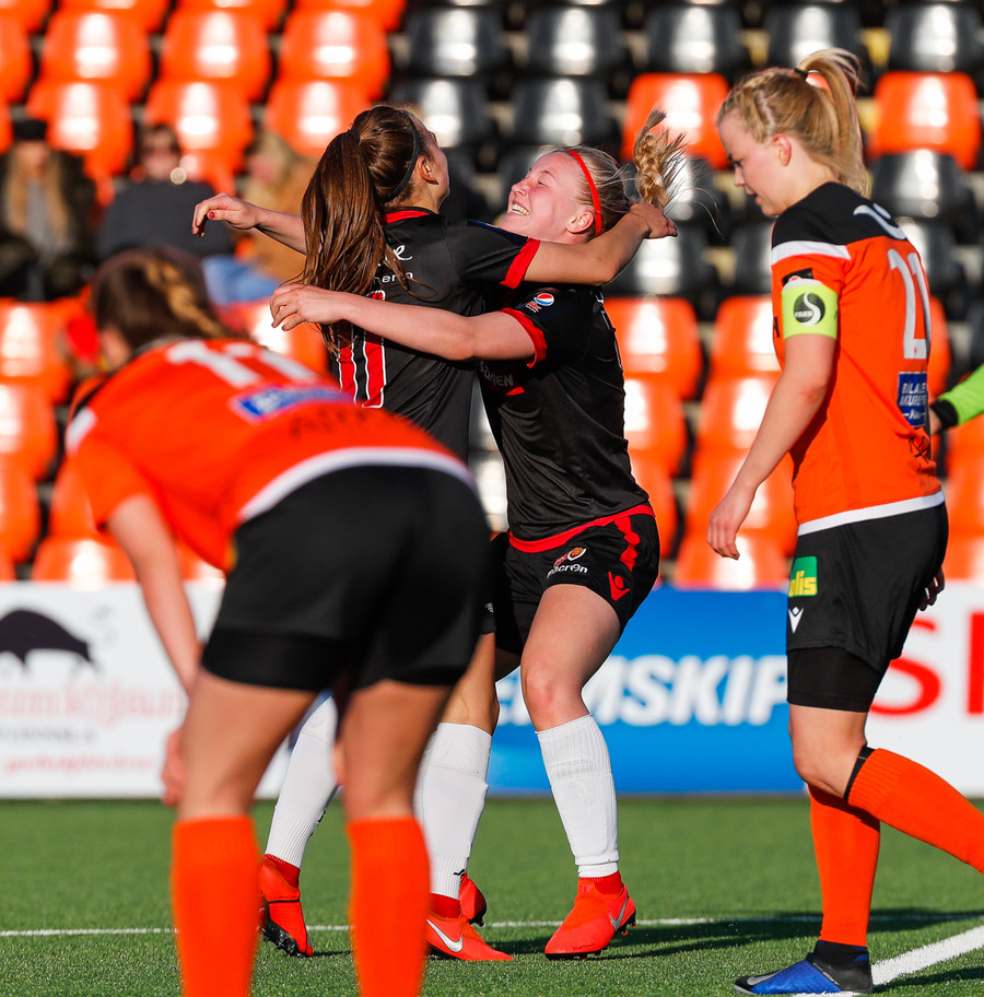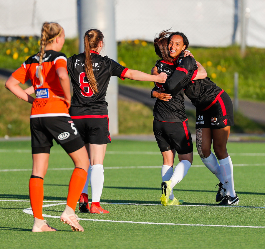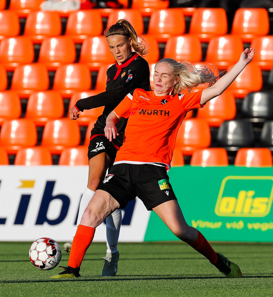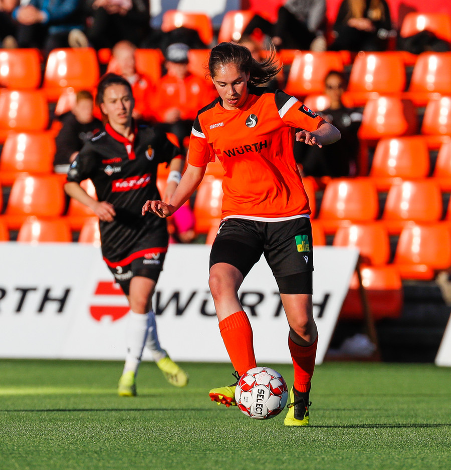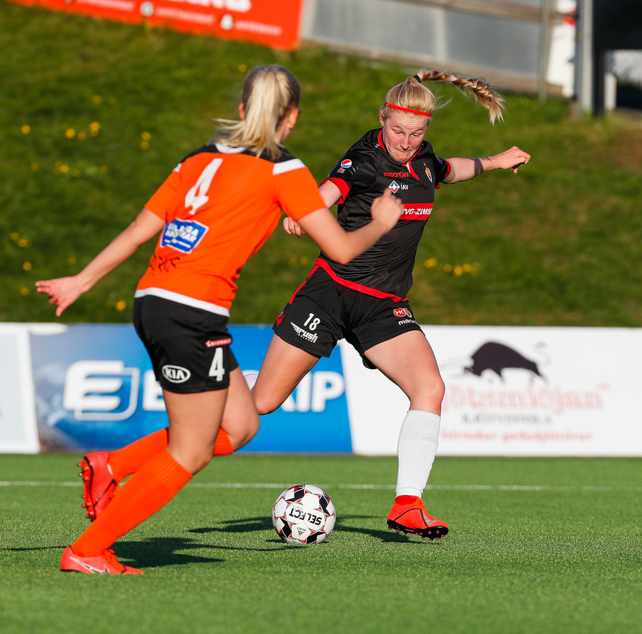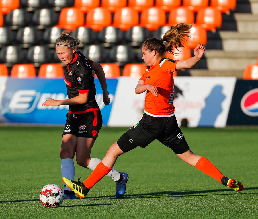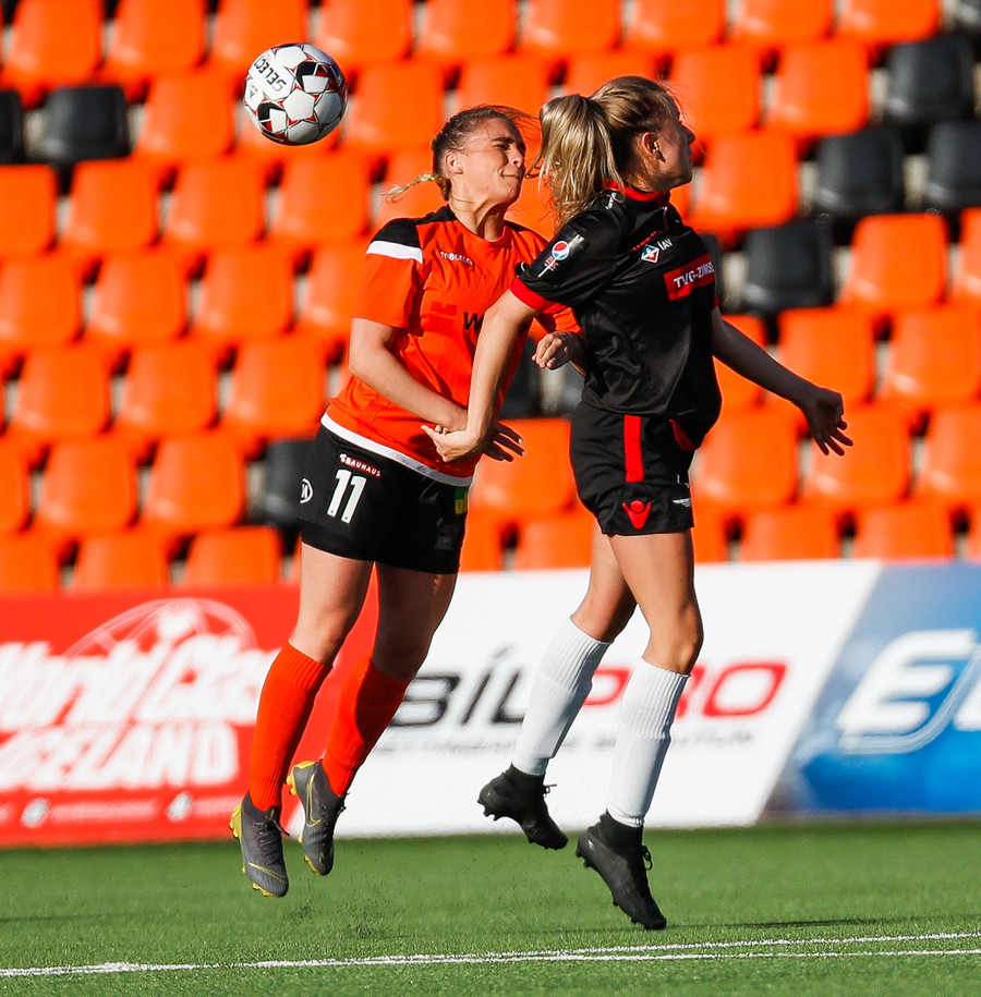 Isabella Eva á fyrsta skot leiksins eftir sendingu frá Karolinu, en það var aldrei hætta. Gestirnir líflegir í byrjun leiks, sækja hratt upp hægri vænginn ég hvert sinn sem þær ná boltanum.