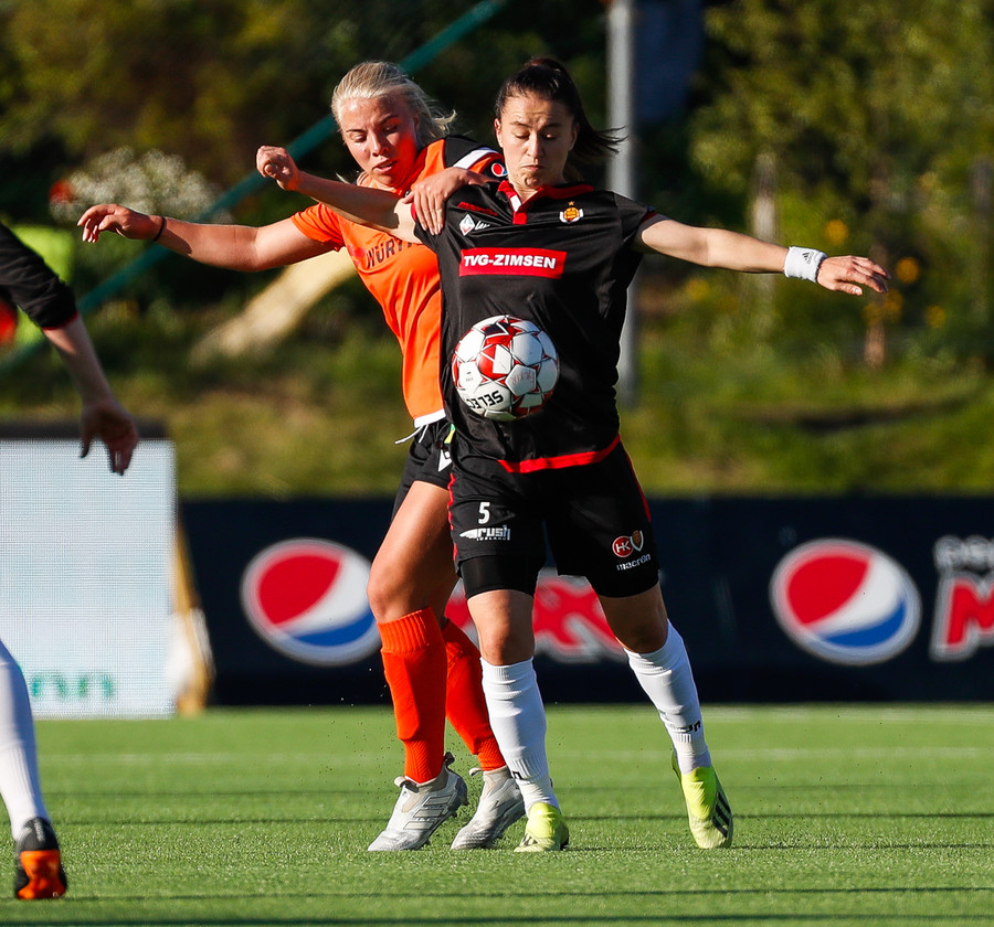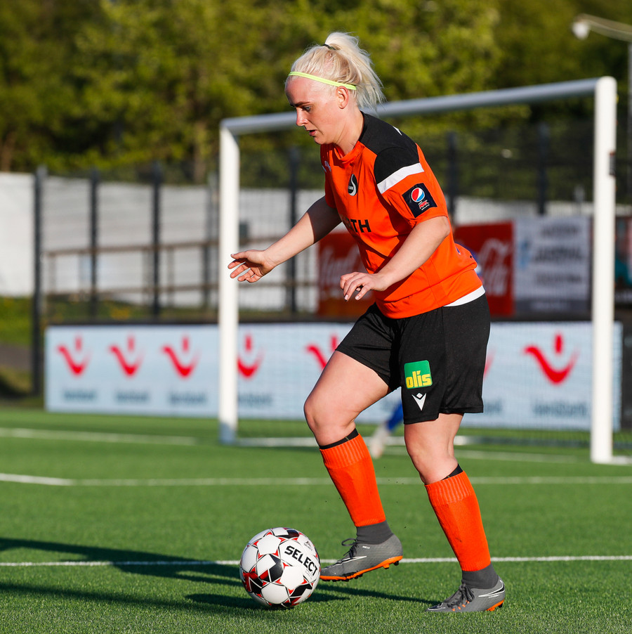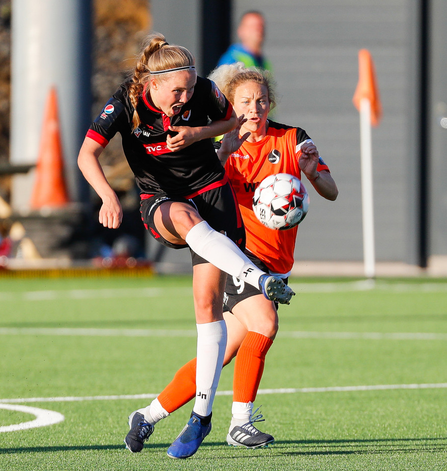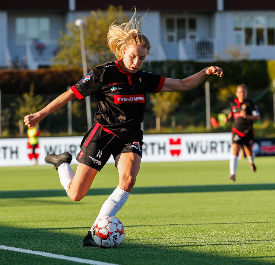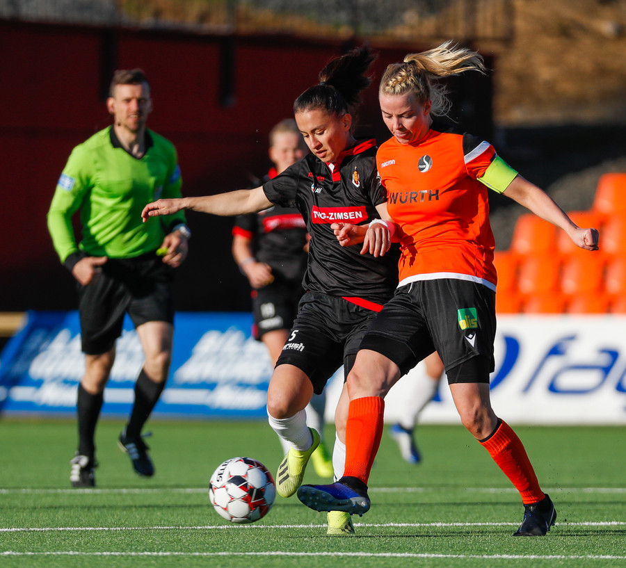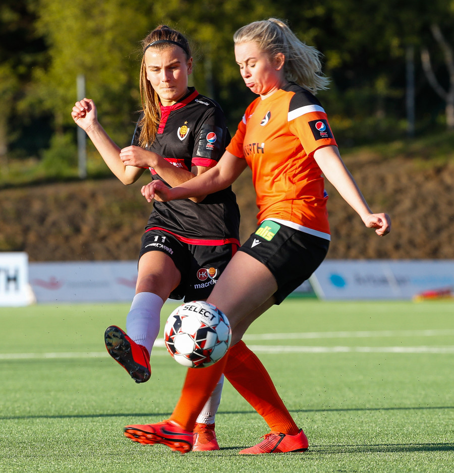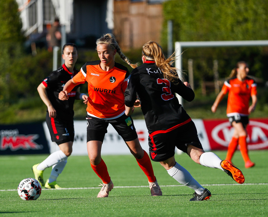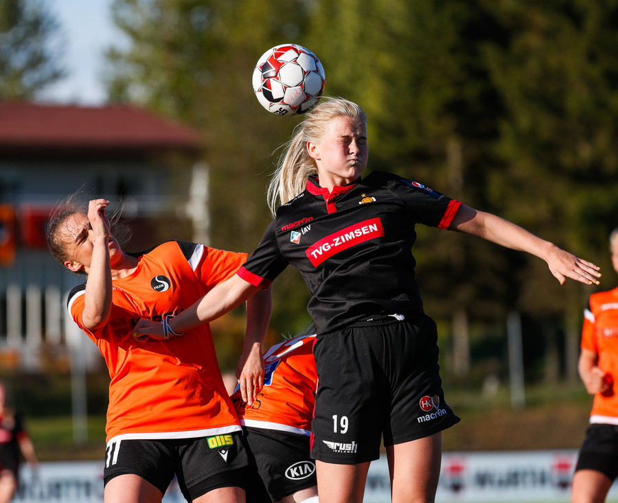 Isabella Eva á fyrsta skot leiksins eftir sendingu frá Karolinu, en það var aldrei hætta. Gestirnir líflegir í byrjun leiks, sækja hratt upp hægri vænginn ég hvert sinn sem þær ná boltanum.