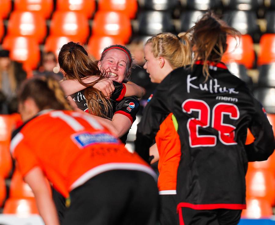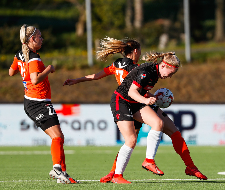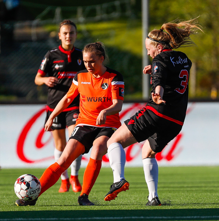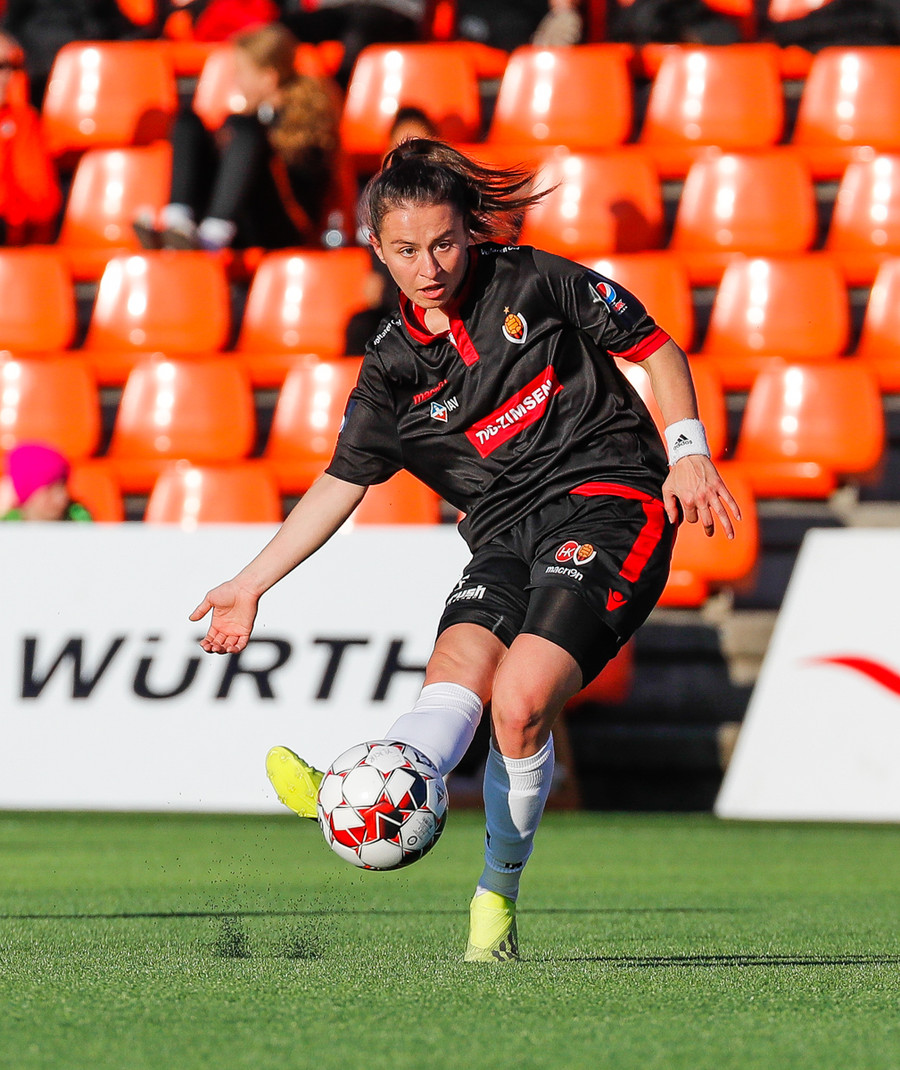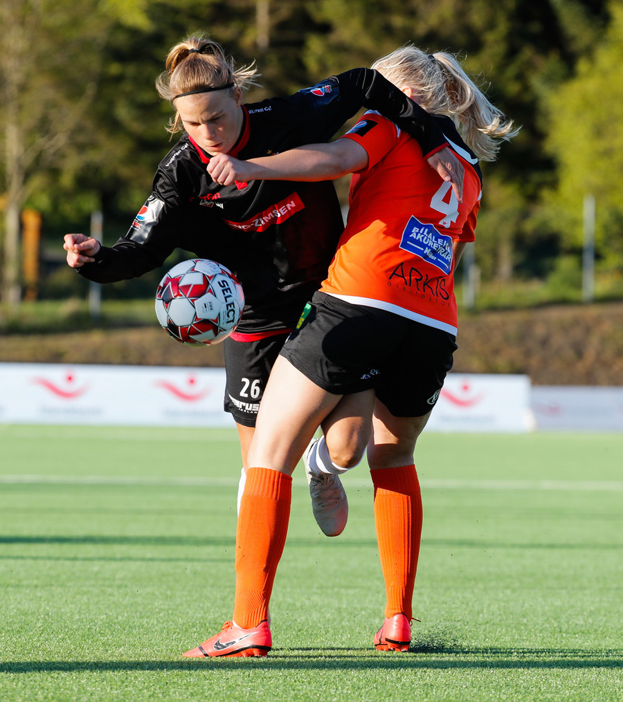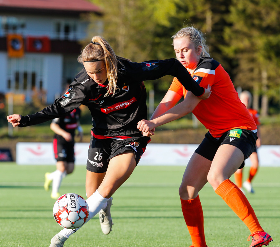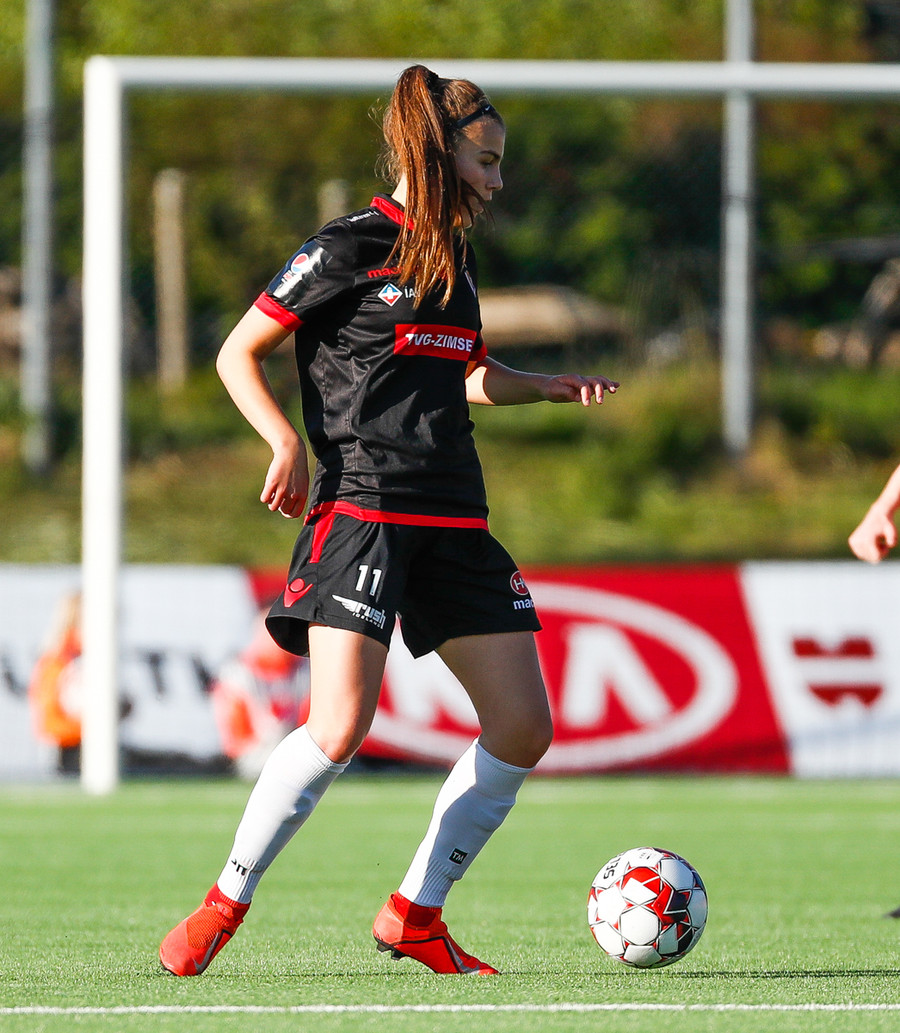 Isabella Eva á fyrsta skot leiksins eftir sendingu frá Karolinu, en það var aldrei hætta. Gestirnir líflegir í byrjun leiks, sækja hratt upp hægri vænginn ég hvert sinn sem þær ná boltanum.