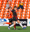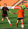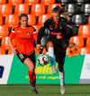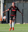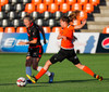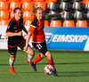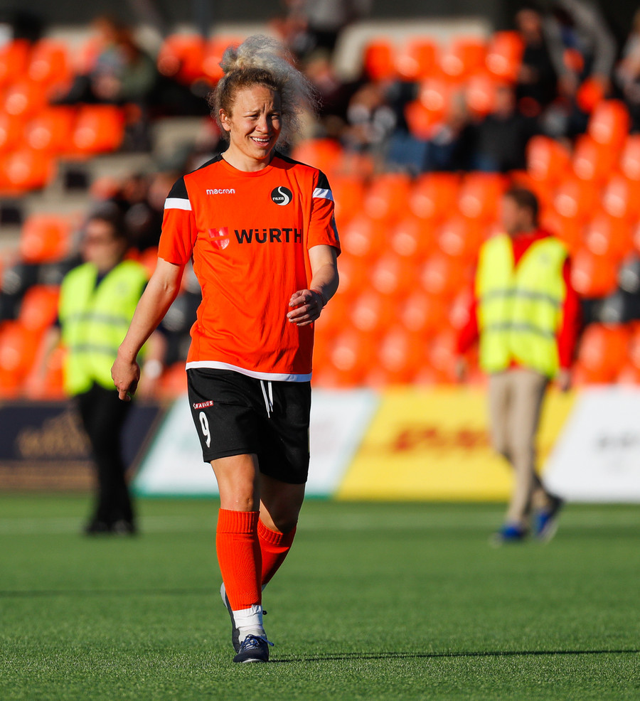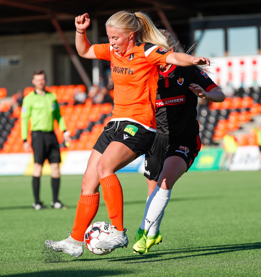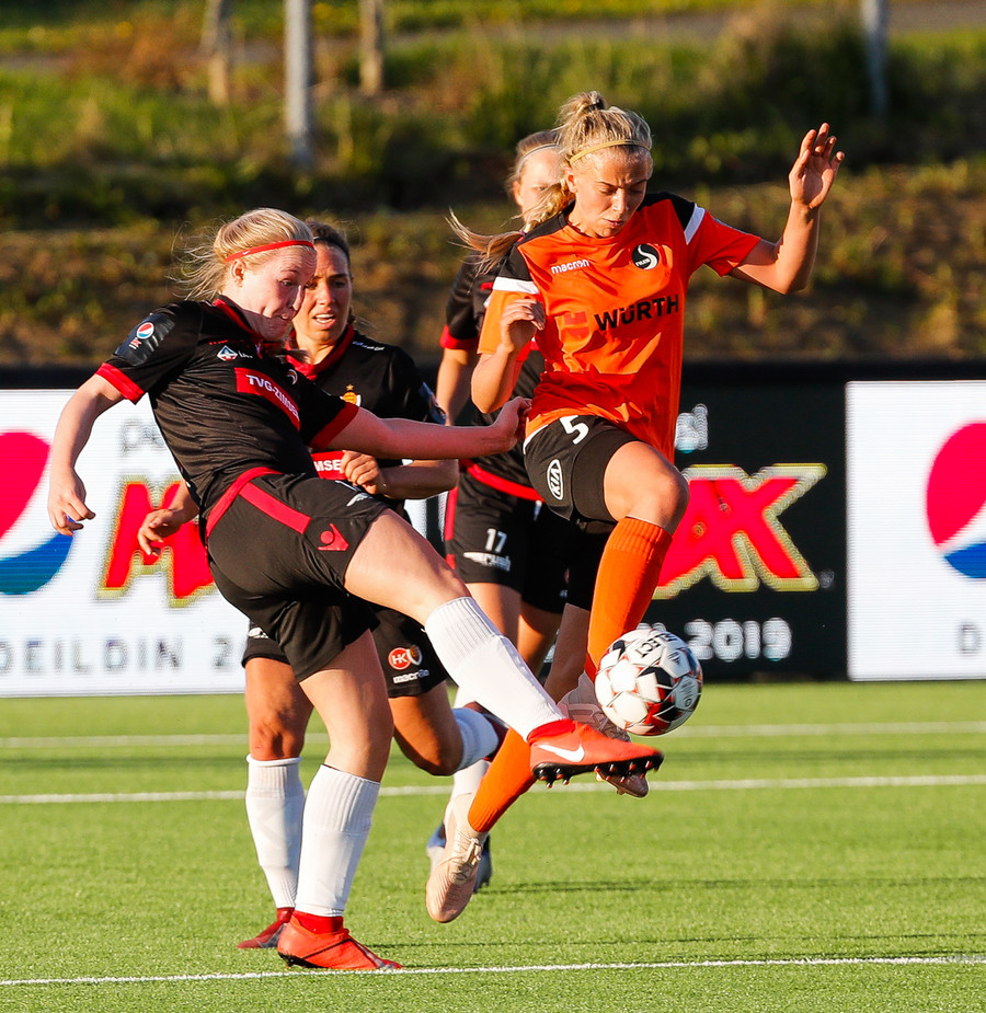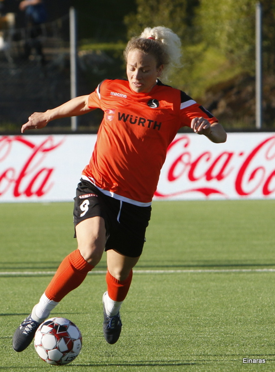 Karólína vinnur boltann og reynir að sækja upp kantinn er Berglind Rós eltir hana upp og gerir nóg til að stoppa sendingu og að lokum brýtur Karólína á henni.